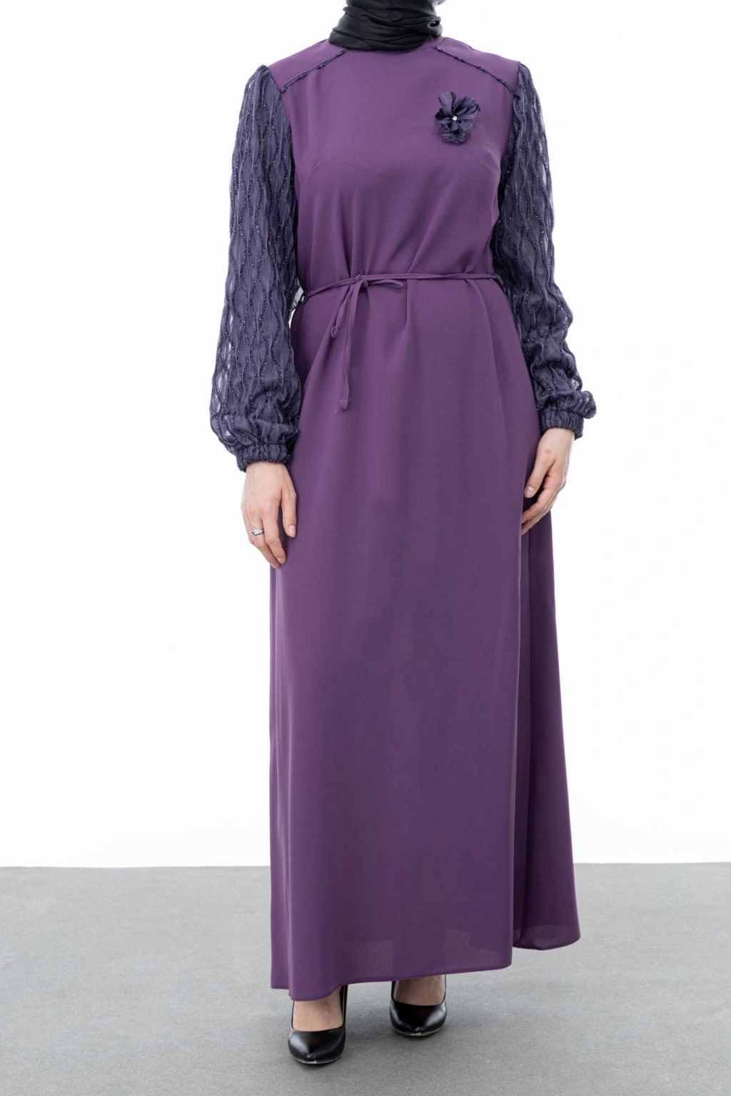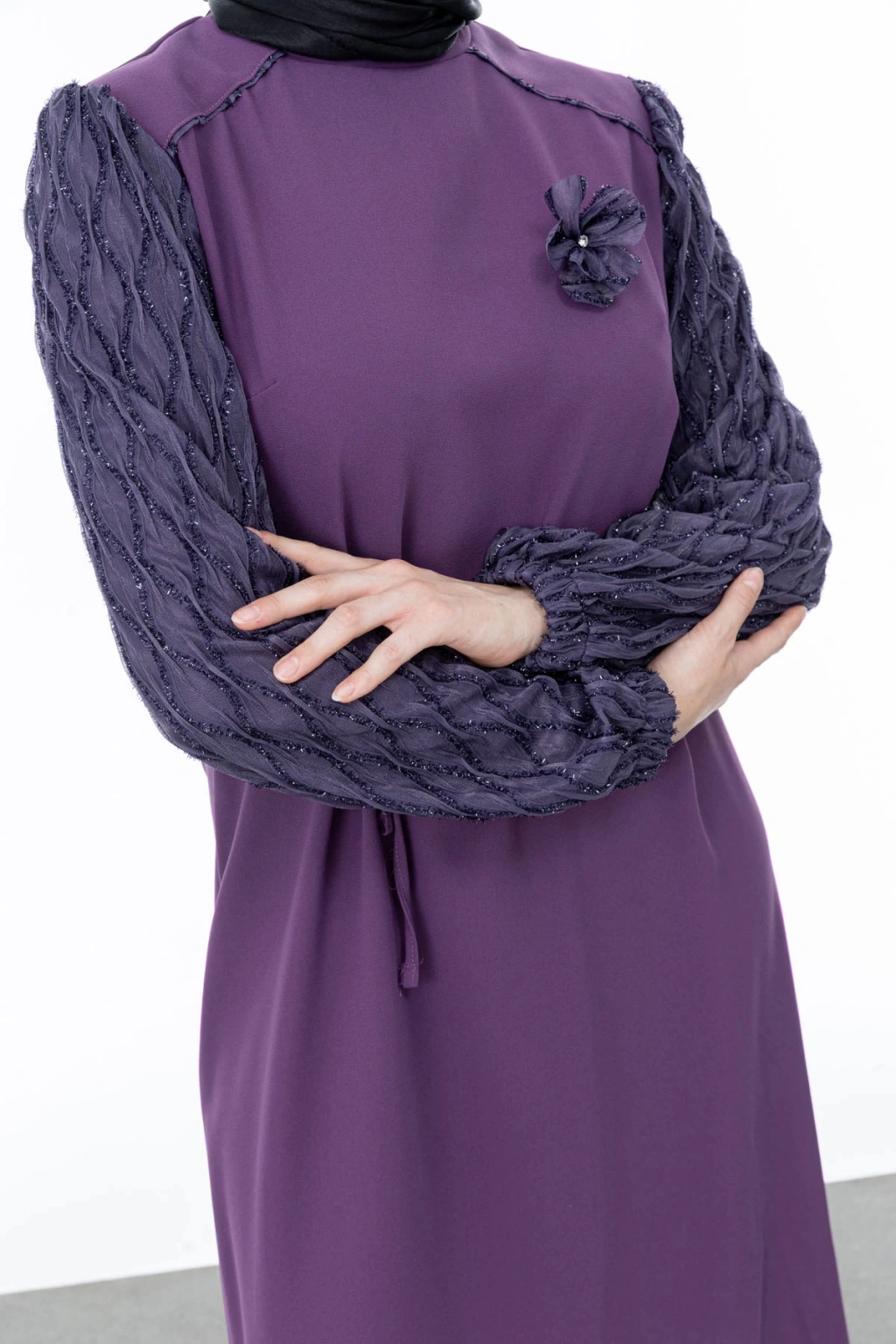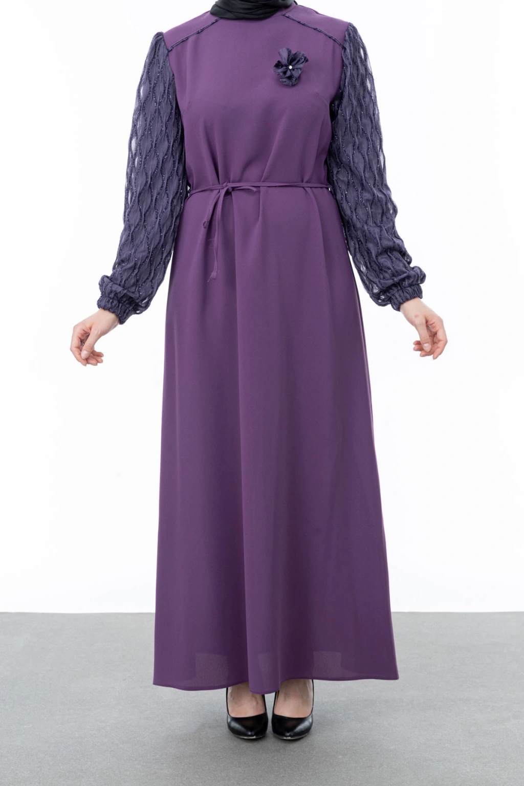 Ürün Adı: GARNİ KUMAŞLI BROŞLU ELBİSE - MÜRDÜM
