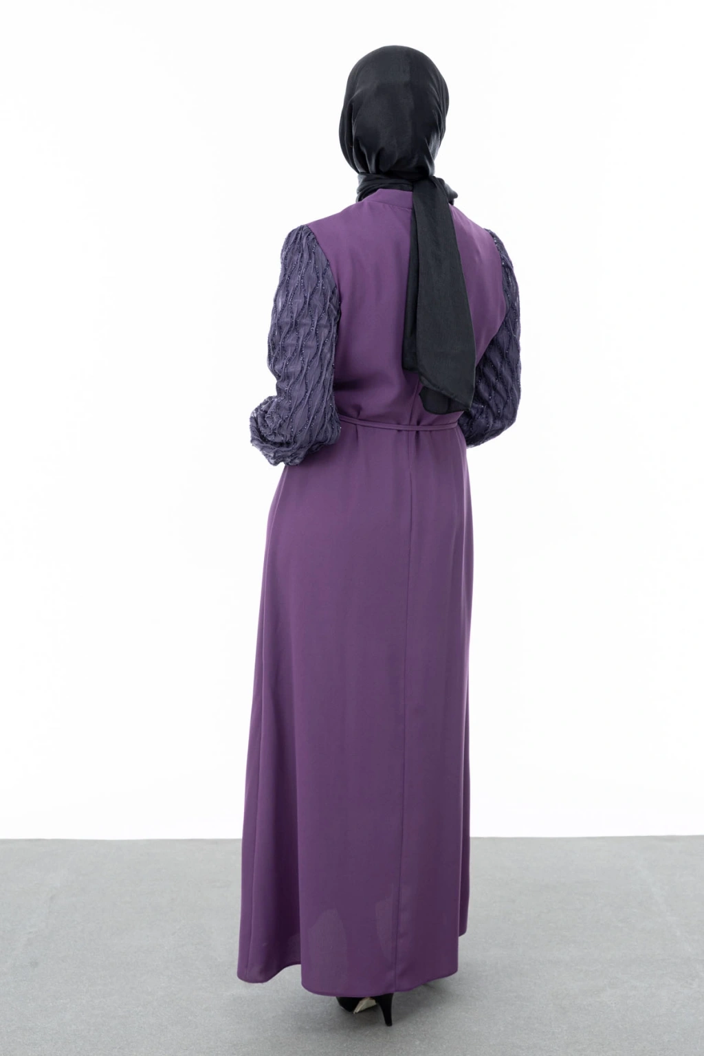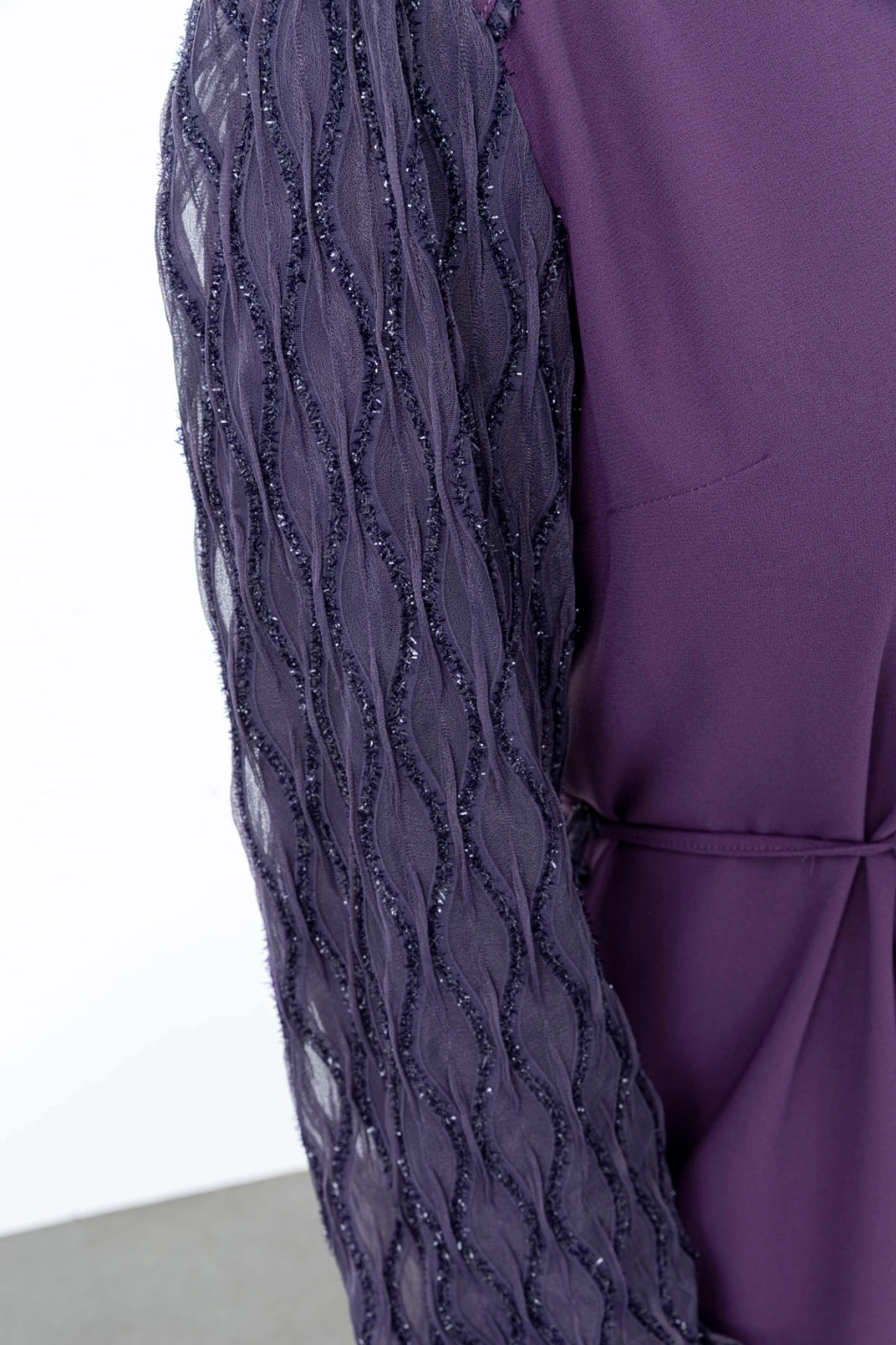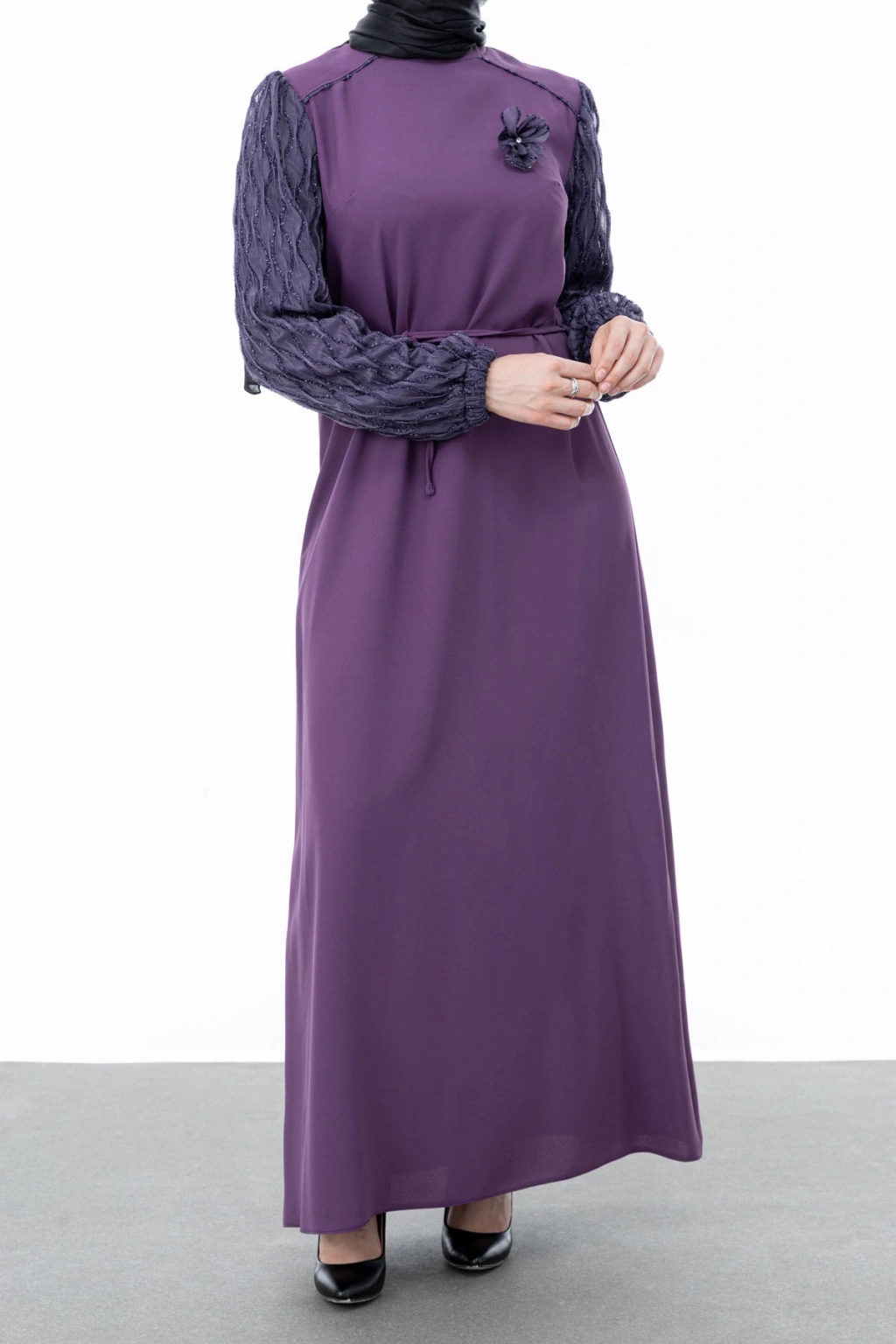 Ürün Adı: GARNİ KUMAŞLI BROŞLU ELBİSE - MÜRDÜM