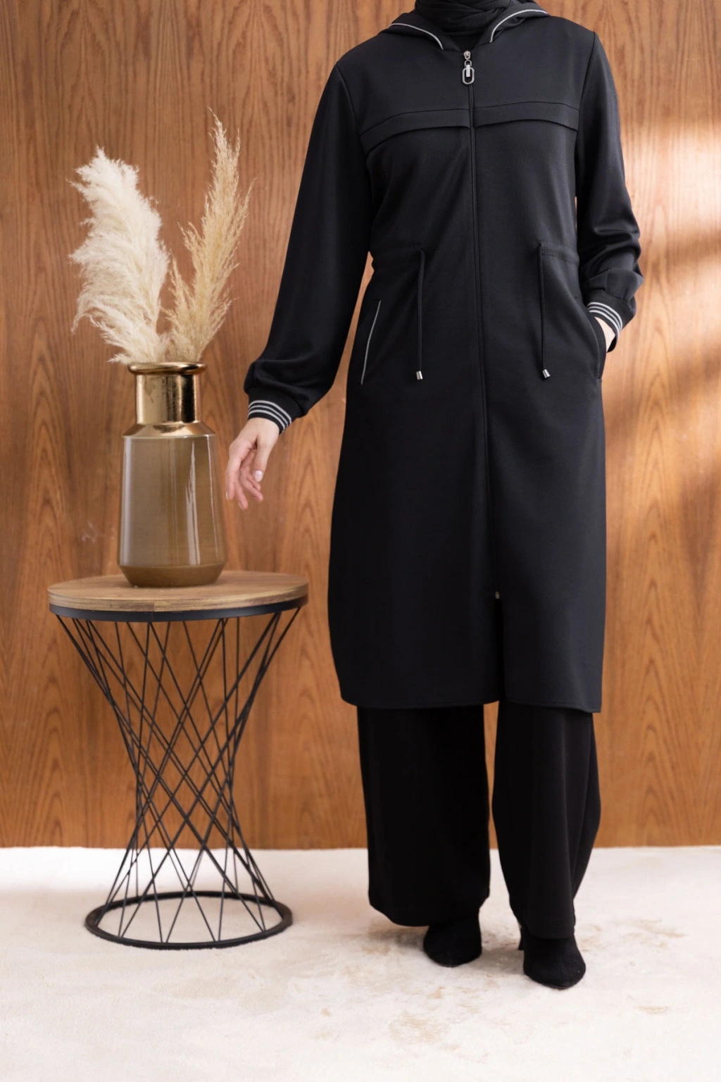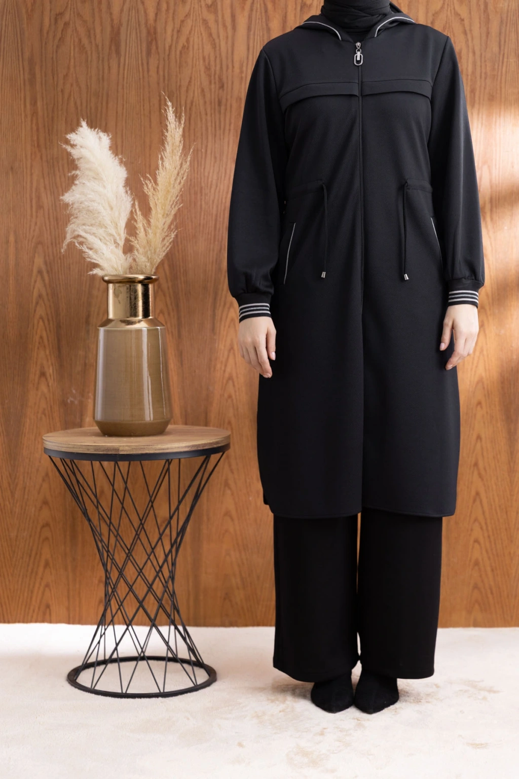 KAPÜŞONLU RİBANA VE ALLER DETAYLI GİYÇIK - SİYAH ile tarzınızı yansıtın ve her ortamda fark yaratın. Şimdi LETAFET kalitesiyle sahip olun ve gardırobunuza yenilik katın!