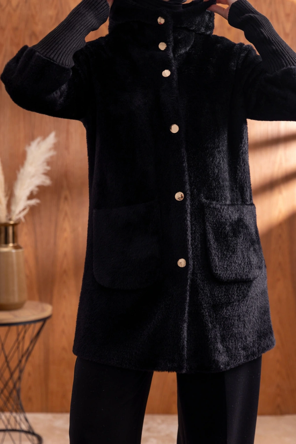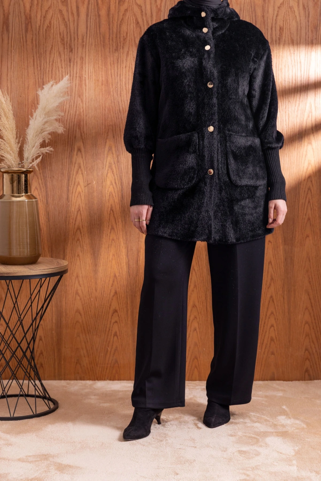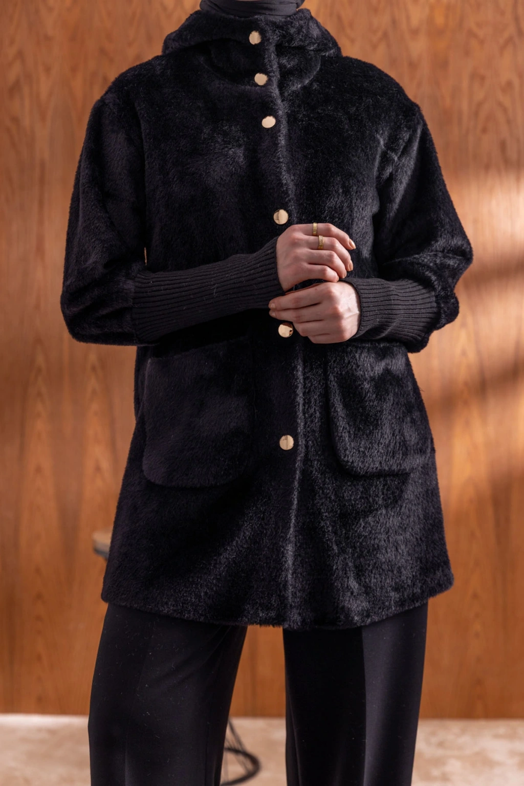 Ürün Adı: KOLLARI RİBANALI TORBA CEPLİ CEKET - SİYAH