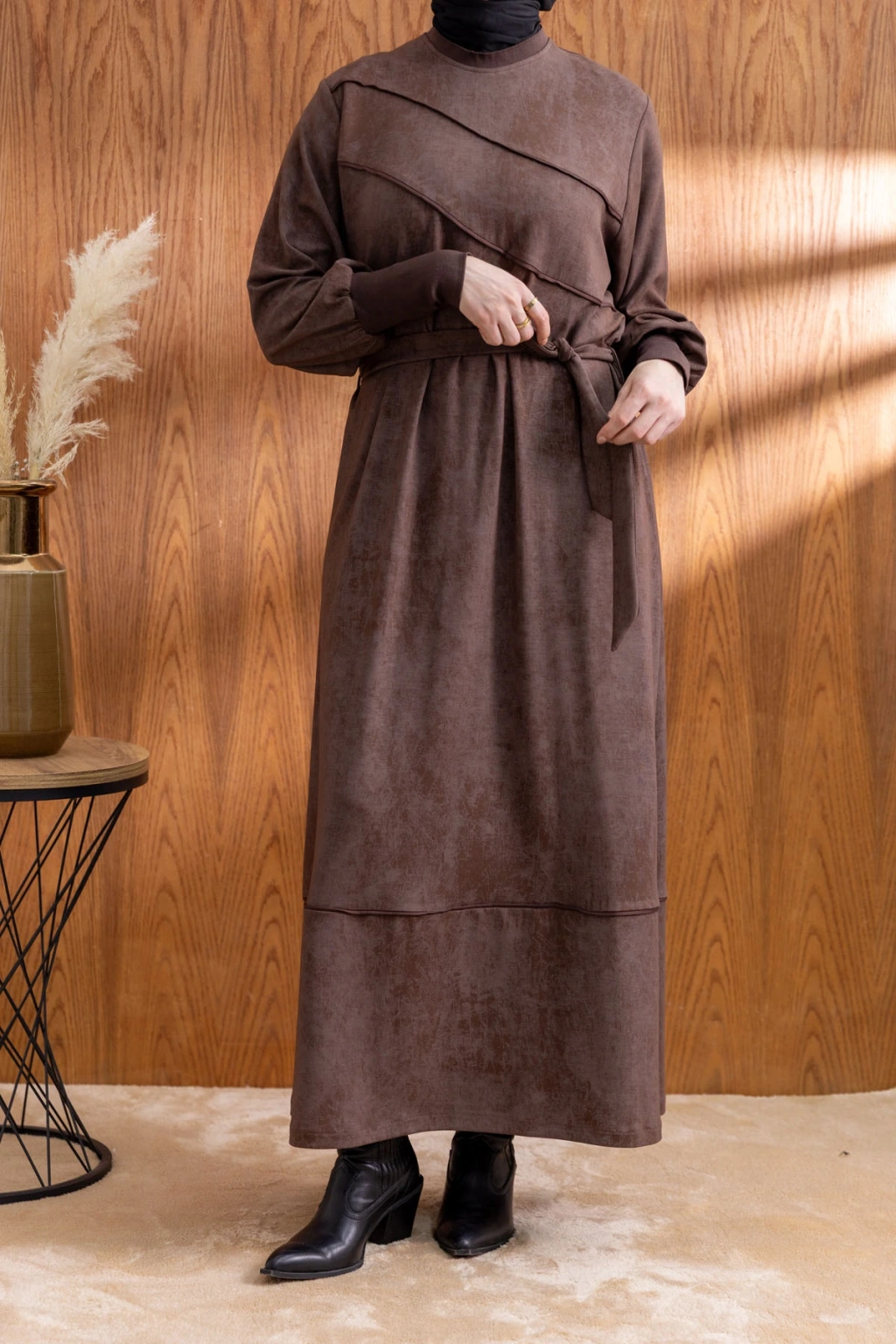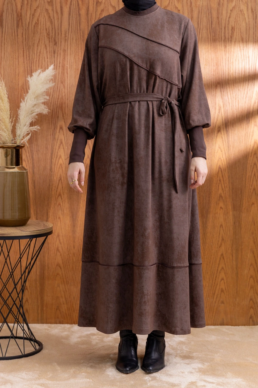KOLLARI VE YAKASI RİBANALI ELBİSE - KAHVE ile tarzınızı yansıtın ve her ortamda fark yaratın. Şimdi LETAFET kalitesiyle sahip olun ve gardırobunuza yenilik katın!