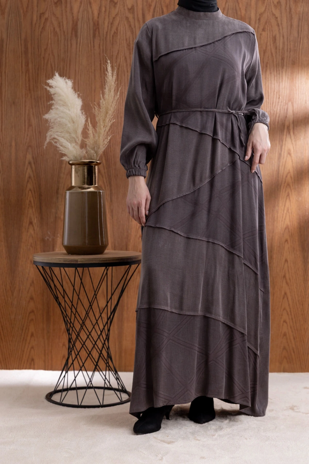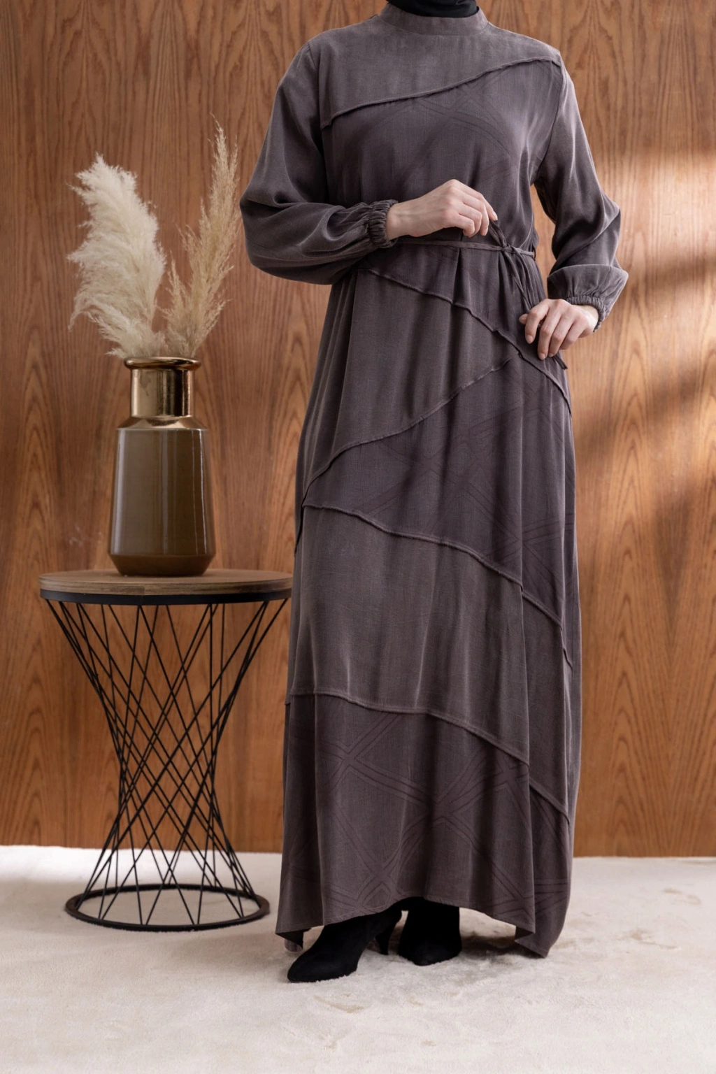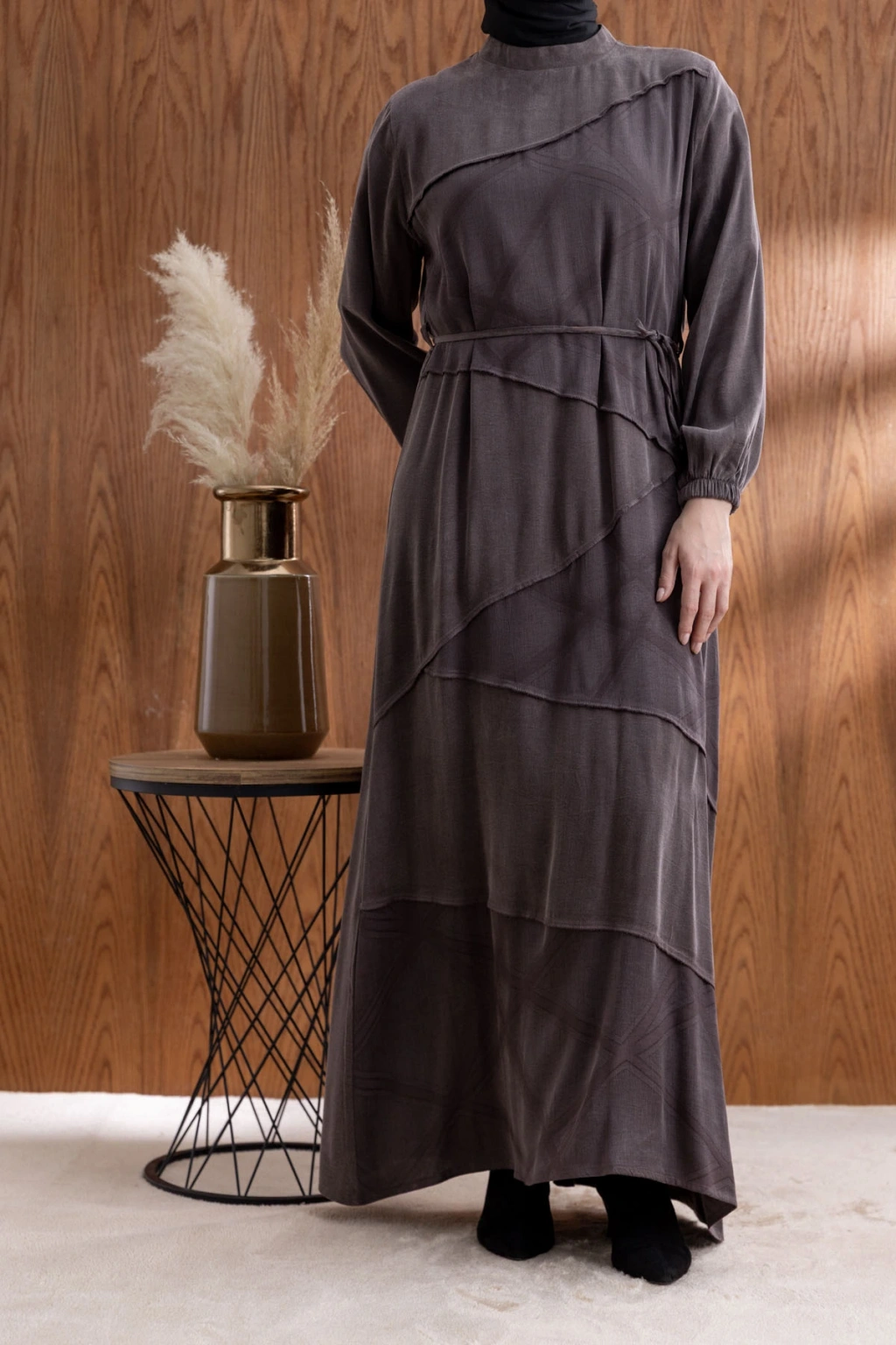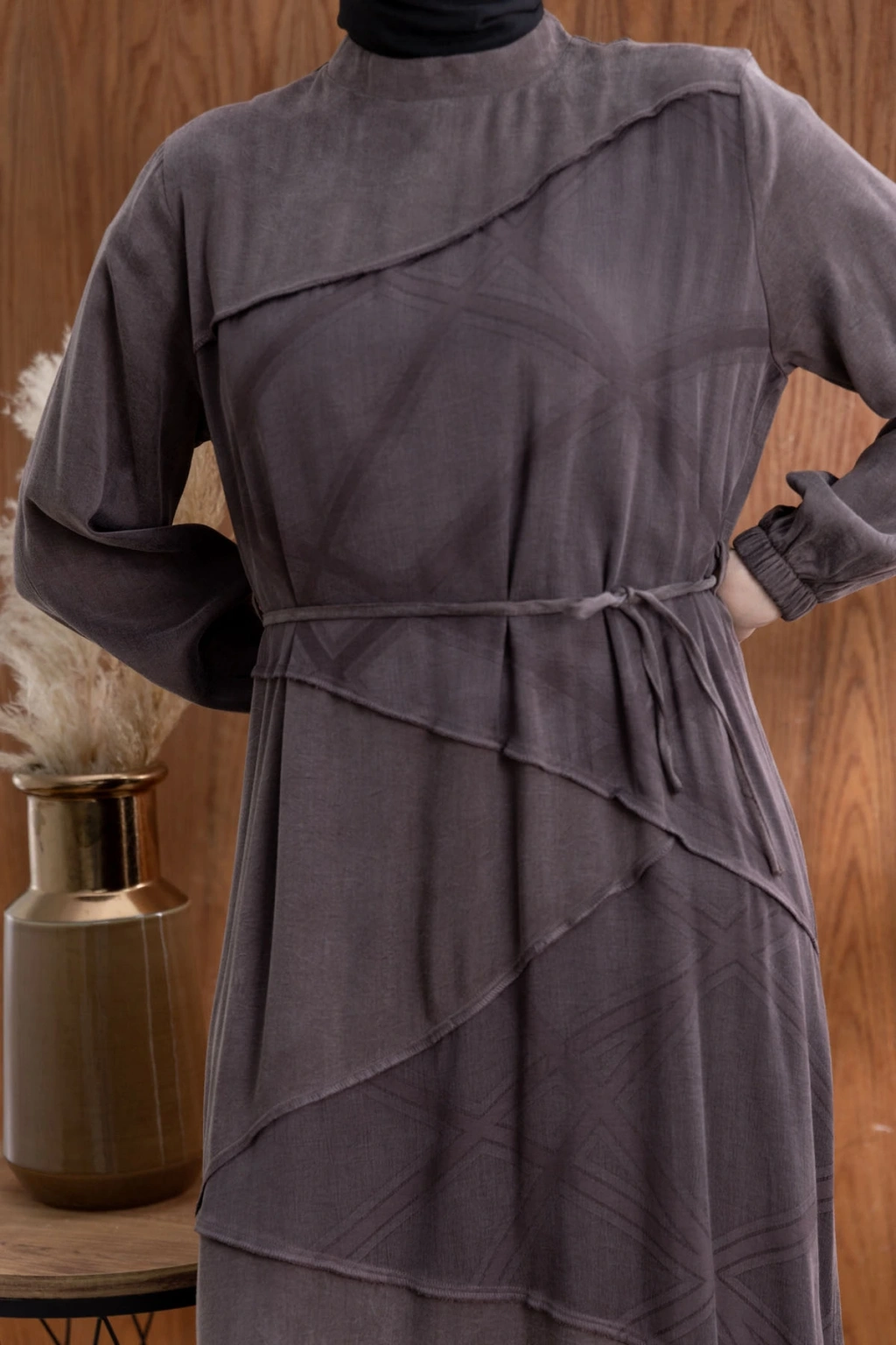 ASİMETRİK KESİM ELBİSE - KAHVE, şıklığı ve rahatlığı bir araya getiren benzersiz bir tasarımdır. Yüksek kaliteli kumaşı ve zarif detayları ile hem günlük kullanıma hem de özel günlere uygun olarak tasarlanmıştır.