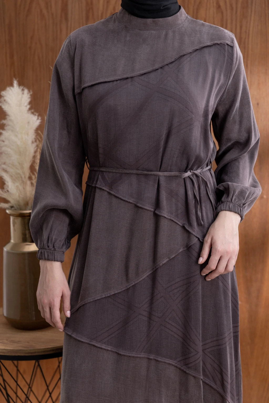 Ürün Adı: ASİMETRİK KESİM ELBİSE - KAHVE