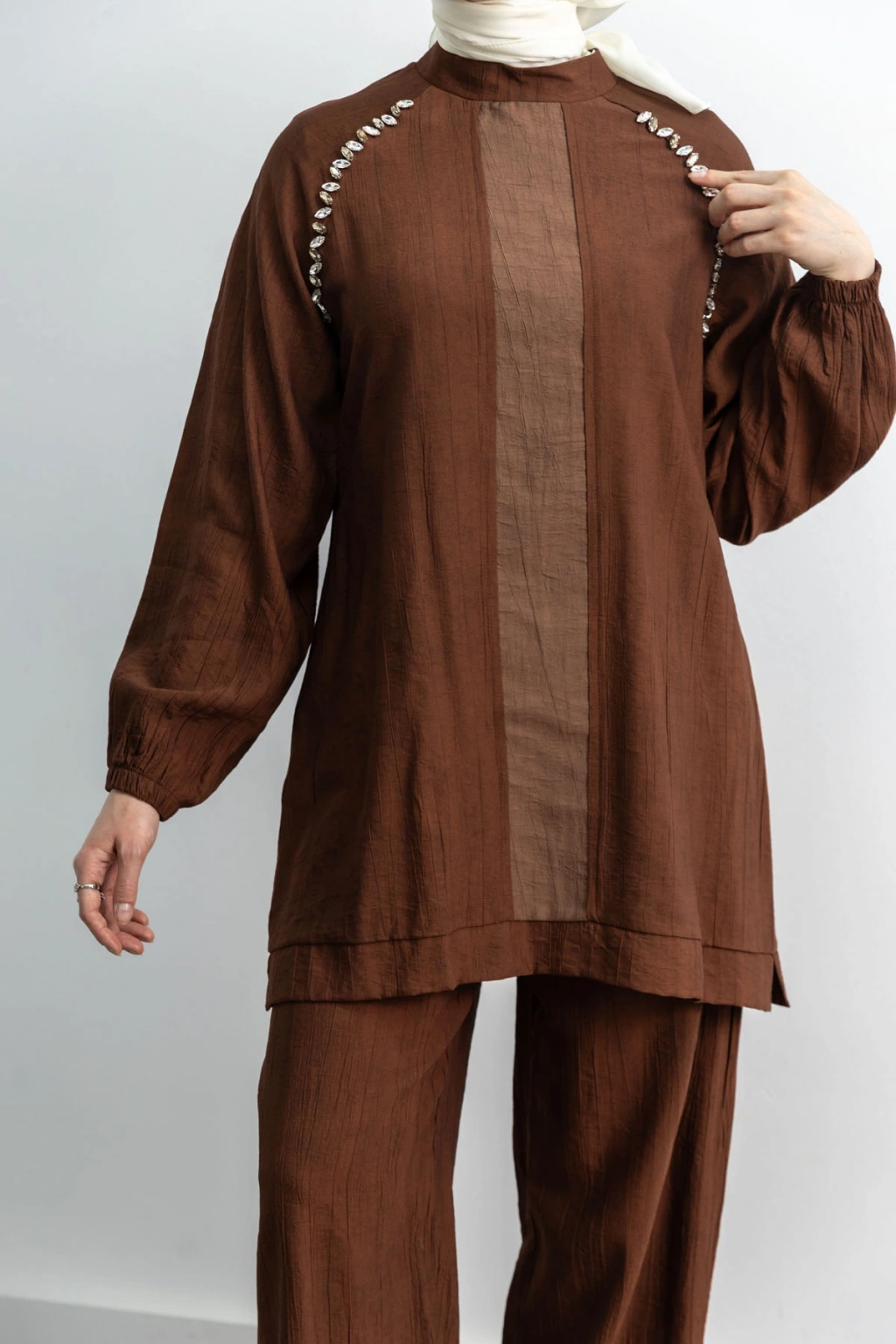 Ürün Adı: LETAFET 4071 PANTOLONLU TAKIM - KAHVE