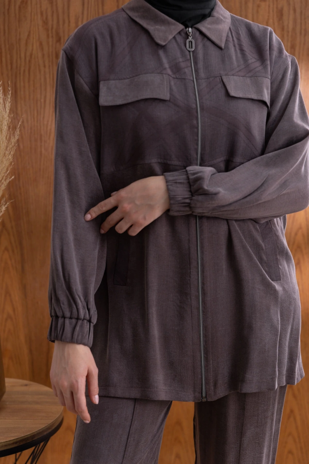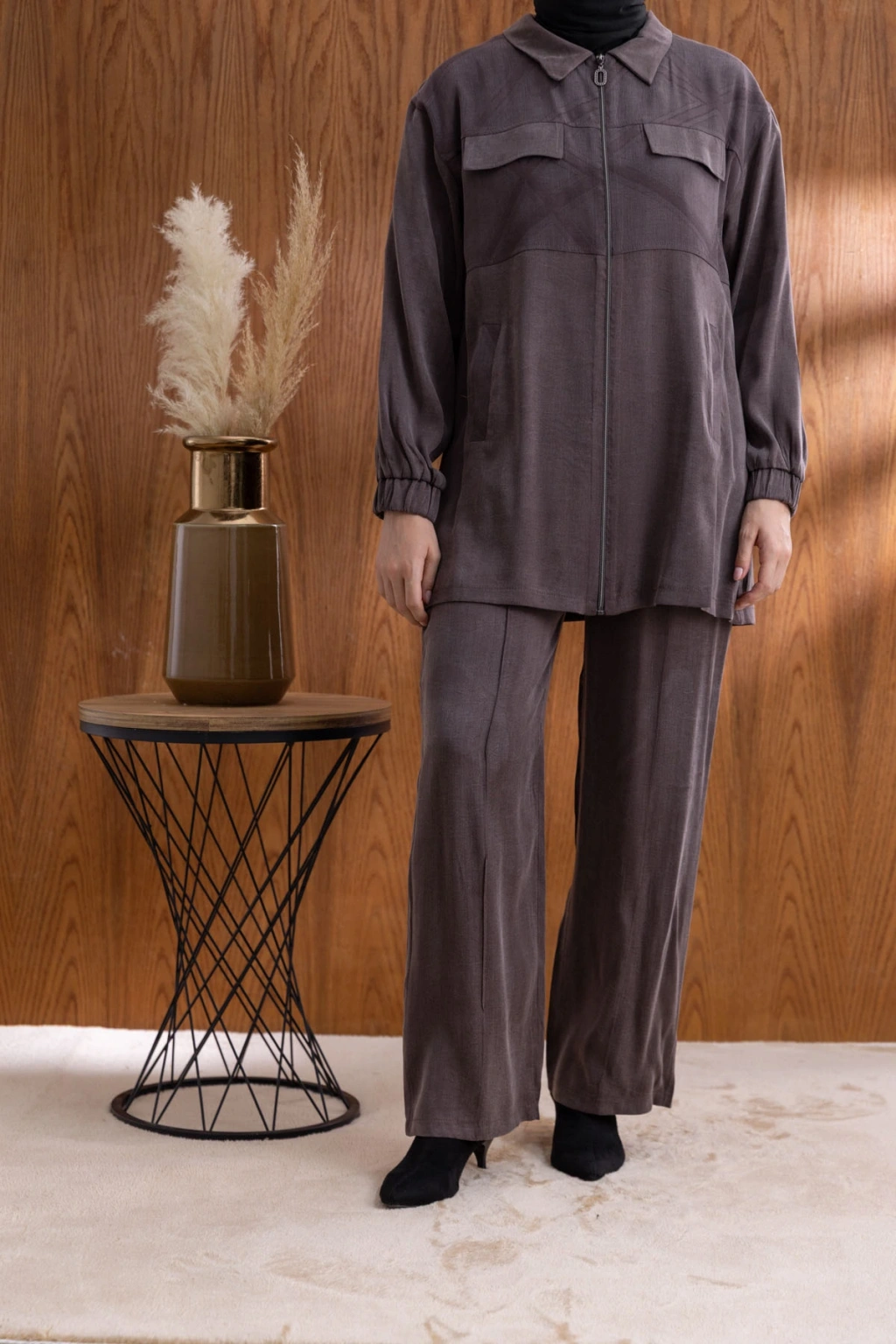 Ürün Adı: CEP KAPAKLI ÖNÜ FERMUARLI PANTOLONLU TAKIM - KAHVE