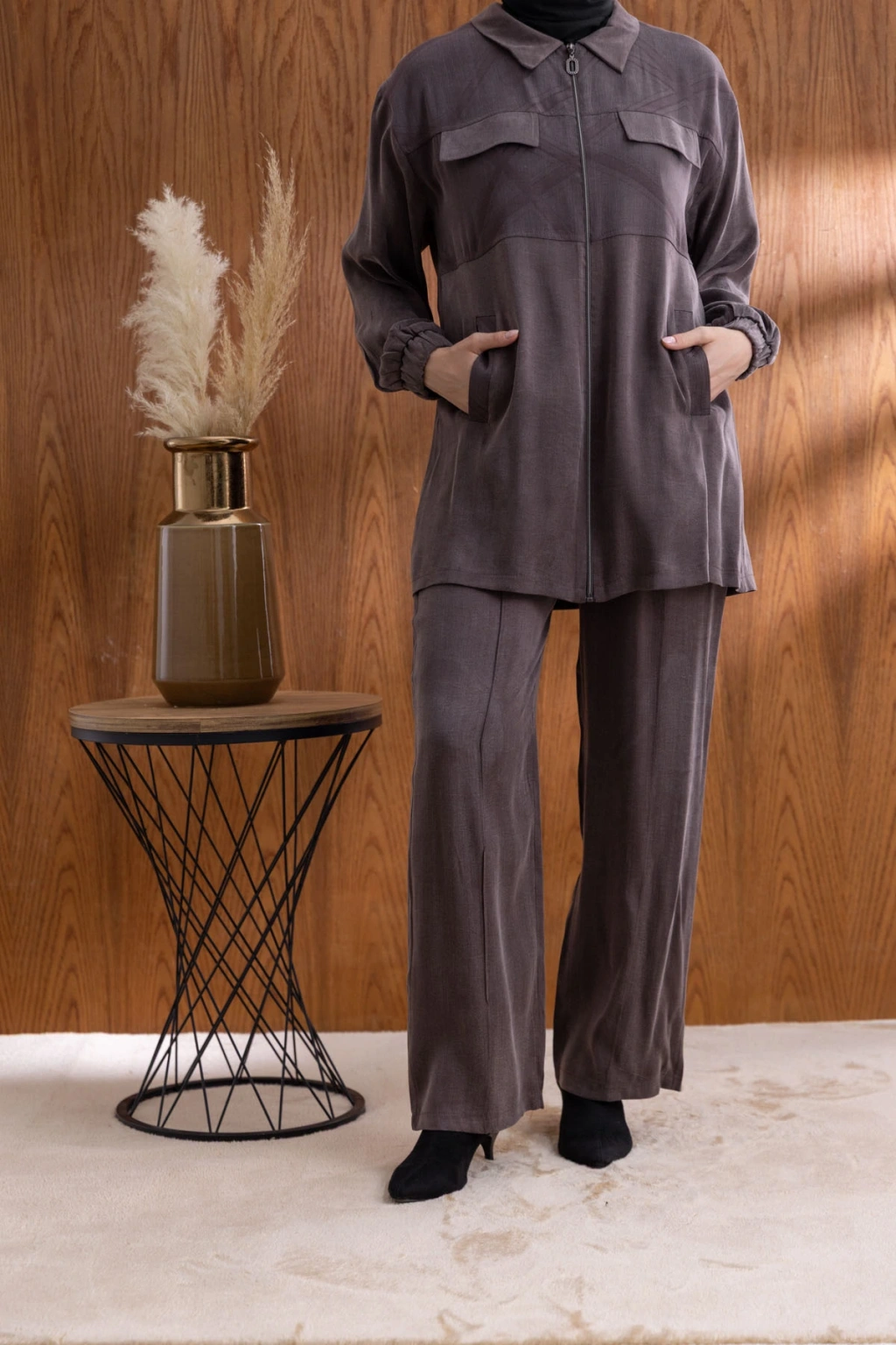 CEP KAPAKLI ÖNÜ FERMUARLI PANTOLONLU TAKIM - KAHVE, şıklığı ve rahatlığı bir araya getiren benzersiz bir tasarımdır. Yüksek kaliteli kumaşı ve zarif detayları ile hem günlük kullanıma hem de özel günlere uygun olarak tasarlanmıştır.