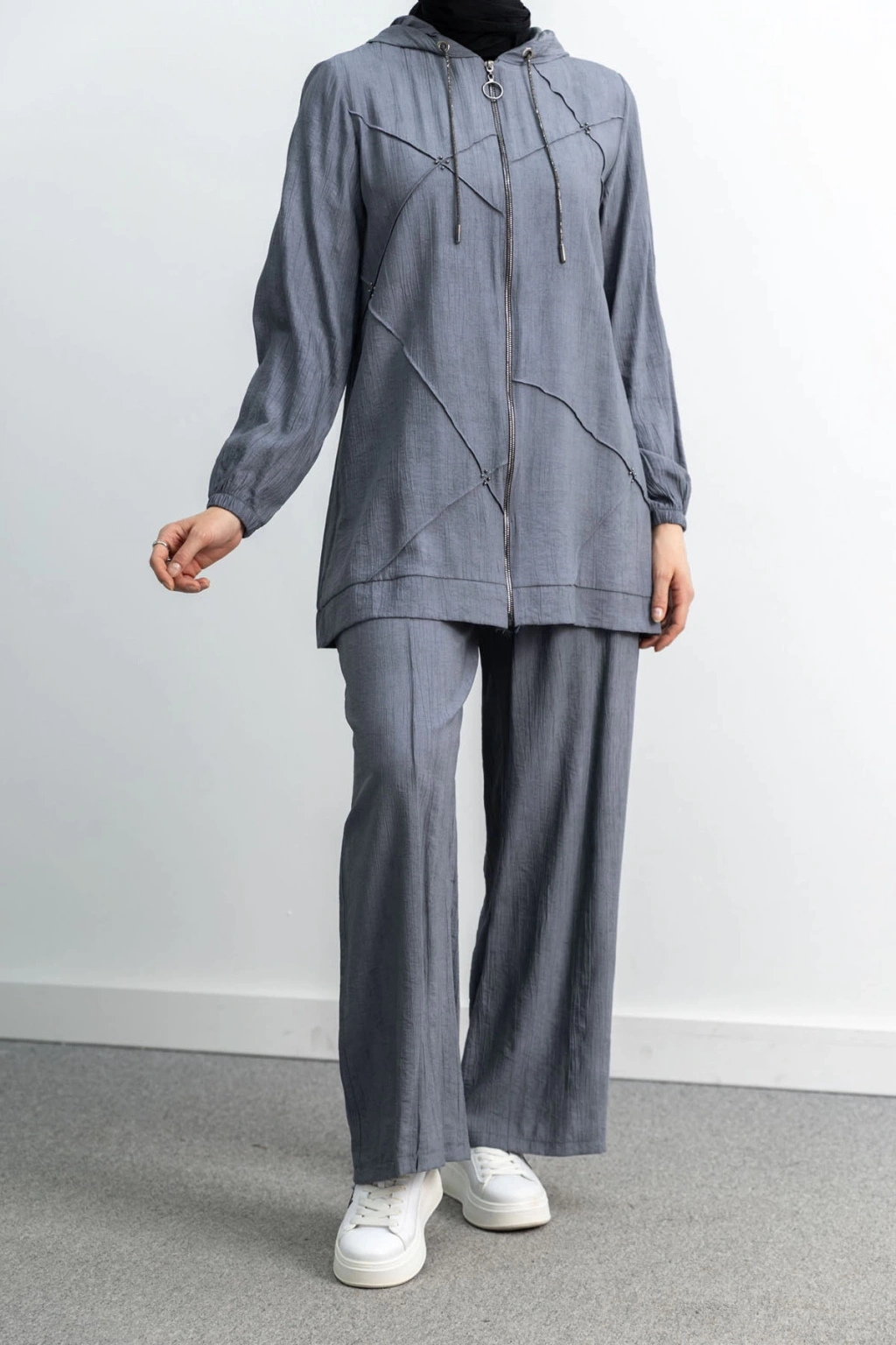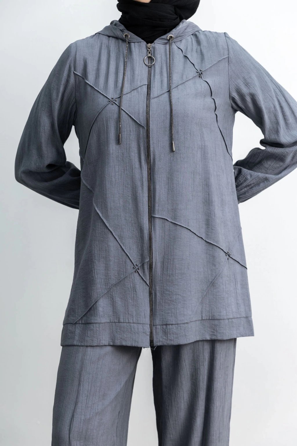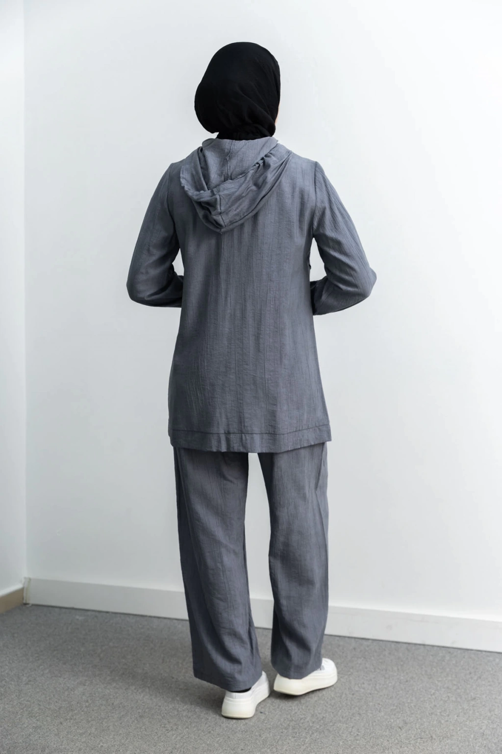 LETAFET 5027 CEKETLİ PANT. TAKIM - GRİ, şıklığı ve rahatlığı bir araya getiren benzersiz bir tasarımdır. Yüksek kaliteli kumaşı ve zarif detayları ile hem günlük kullanıma hem de özel günlere uygun olarak tasarlanmıştır.