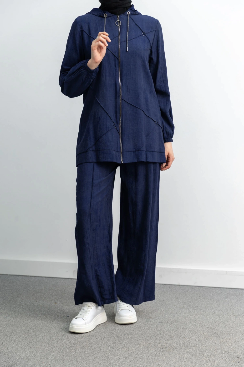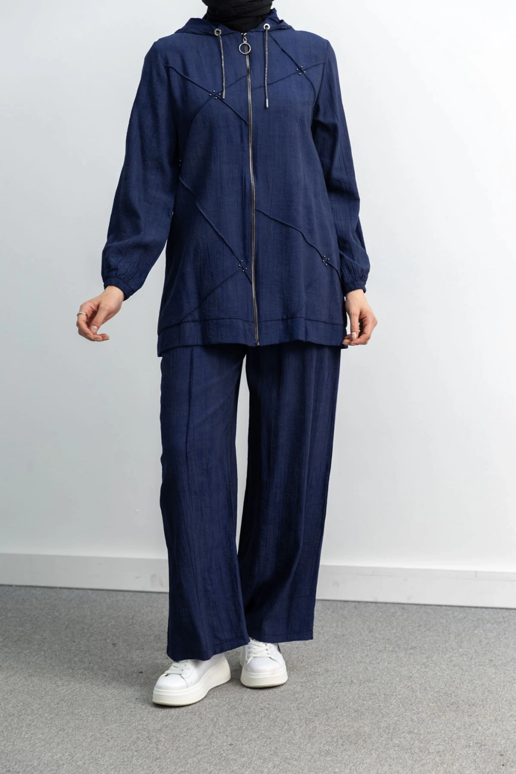 LETAFET 5027 CEKETLİ PANT. TAKIM - LACİVERT, şıklığı ve rahatlığı bir araya getiren benzersiz bir tasarımdır. Yüksek kaliteli kumaşı ve zarif detayları ile hem günlük kullanıma hem de özel günlere uygun olarak tasarlanmıştır.