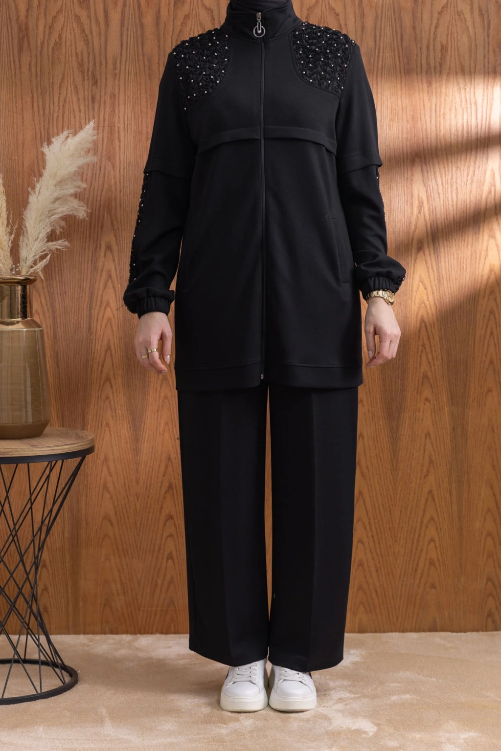 DANTEL DETAYLI PANTOLONLU TAKIM - SİYAH ile tarzınızı yansıtın ve her ortamda fark yaratın. Şimdi LETAFET kalitesiyle sahip olun ve gardırobunuza yenilik katın!