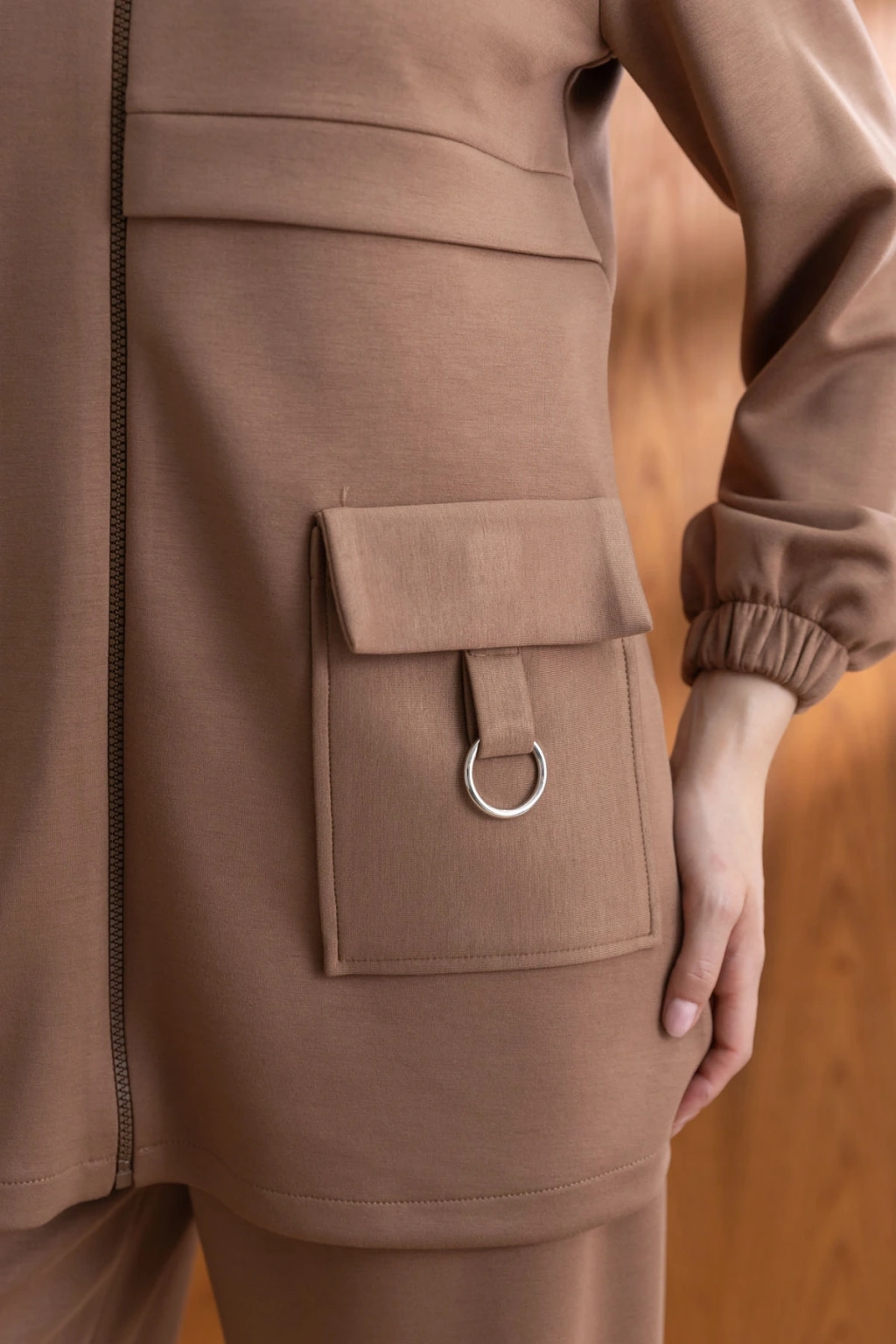 Ürün Adı: Letafet Cep Detaylı Ceketli Pantolonlu Takım - AÇIK KAHVE