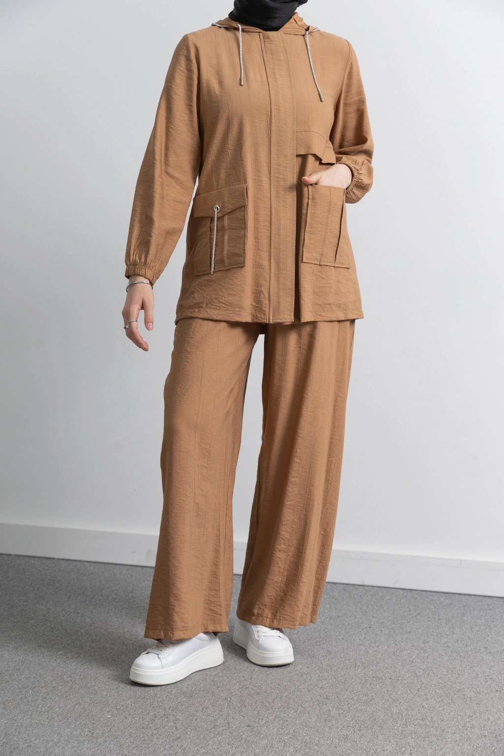 Ürün Adı: Letafet Cep Detaylı Pantolonlu Takım - TÜTÜN