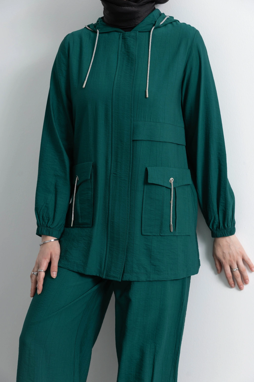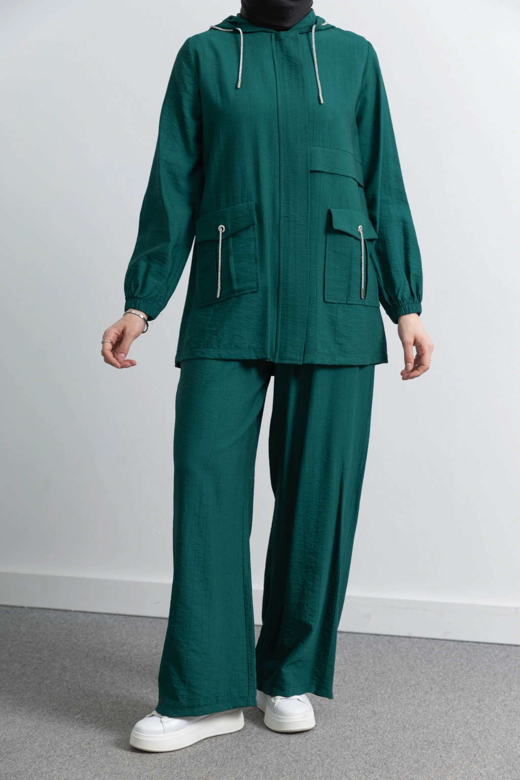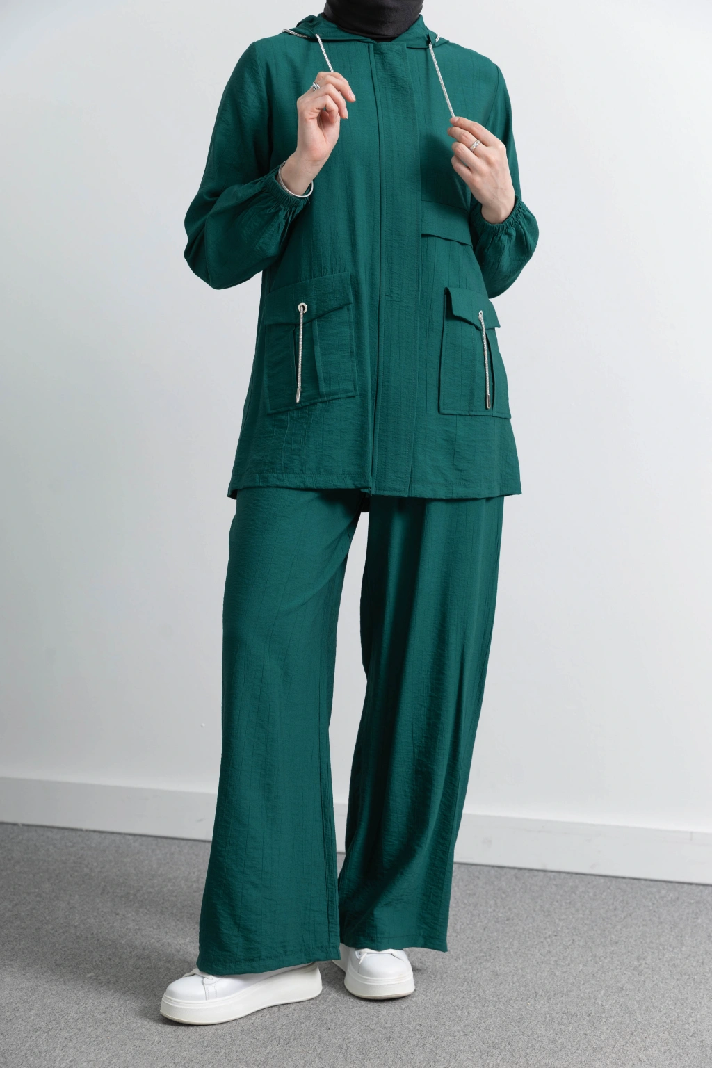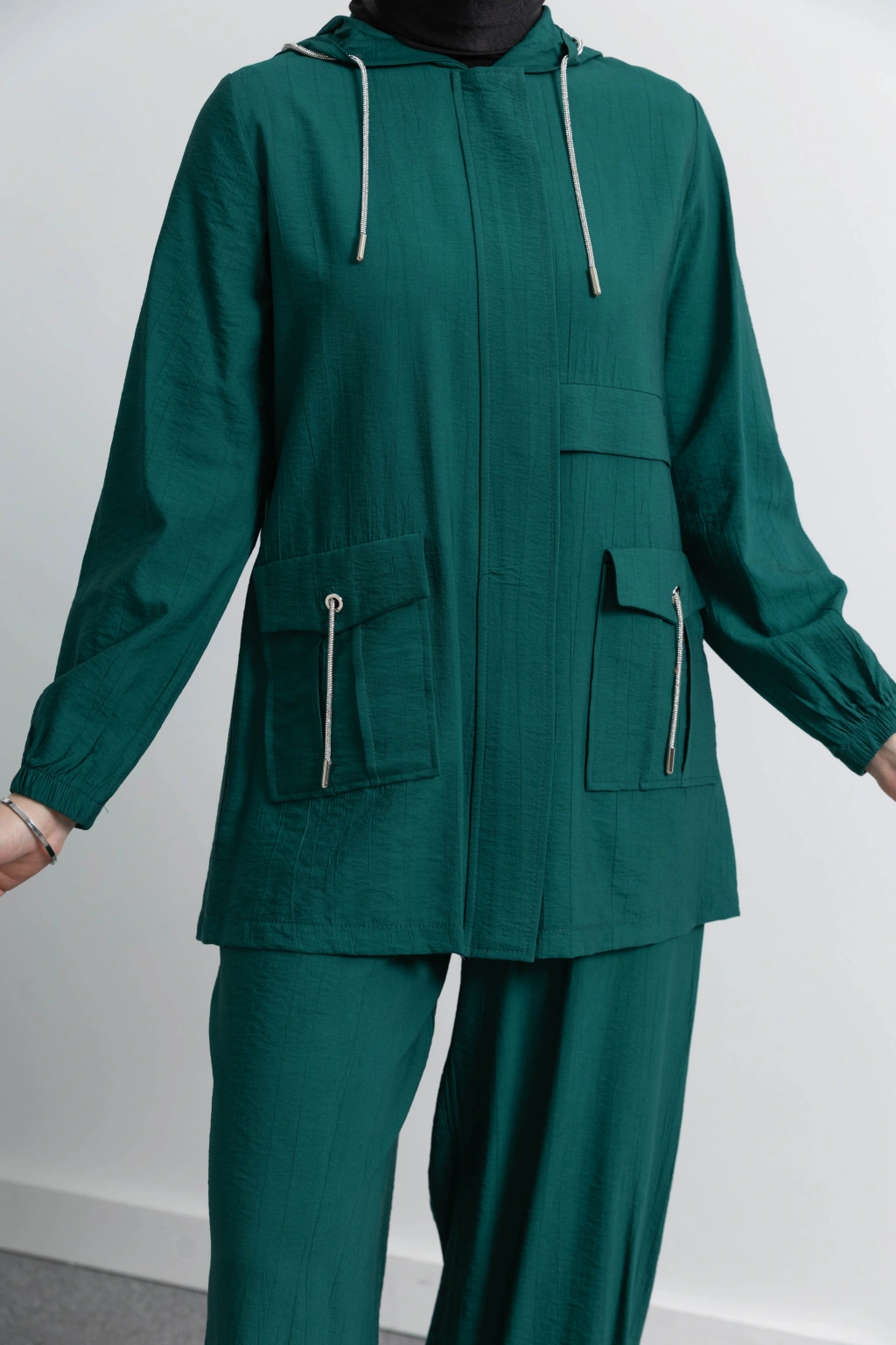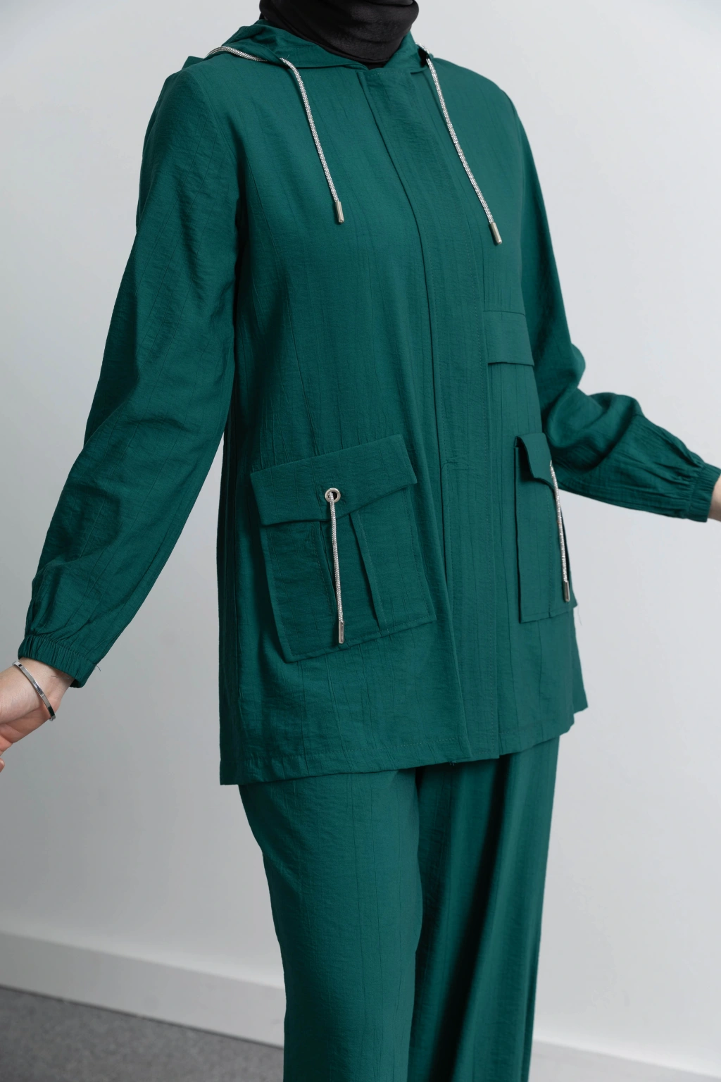 Ürün Adı: Letafet Cep Detaylı Pantolonlu Takım - ZÜMRÜT