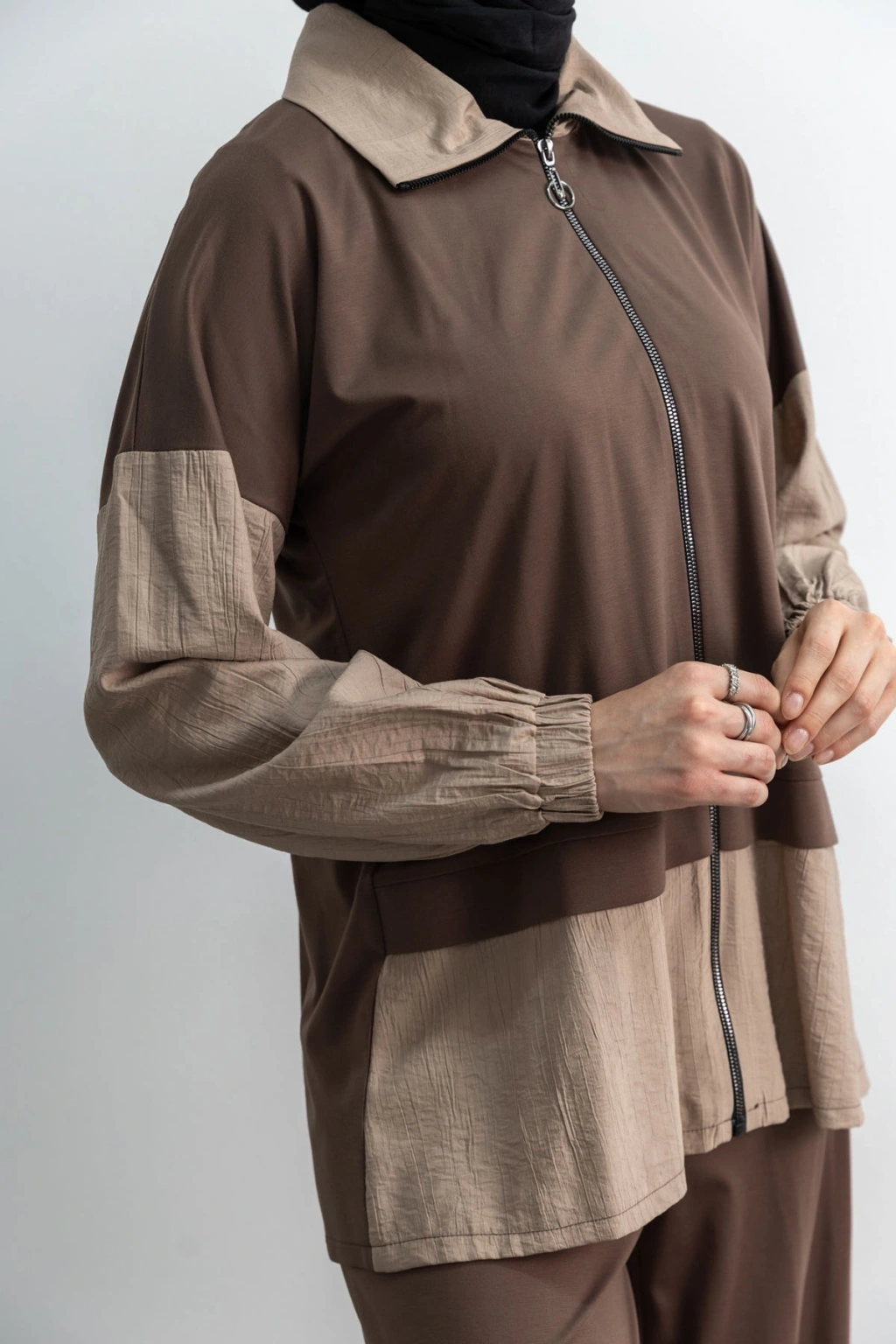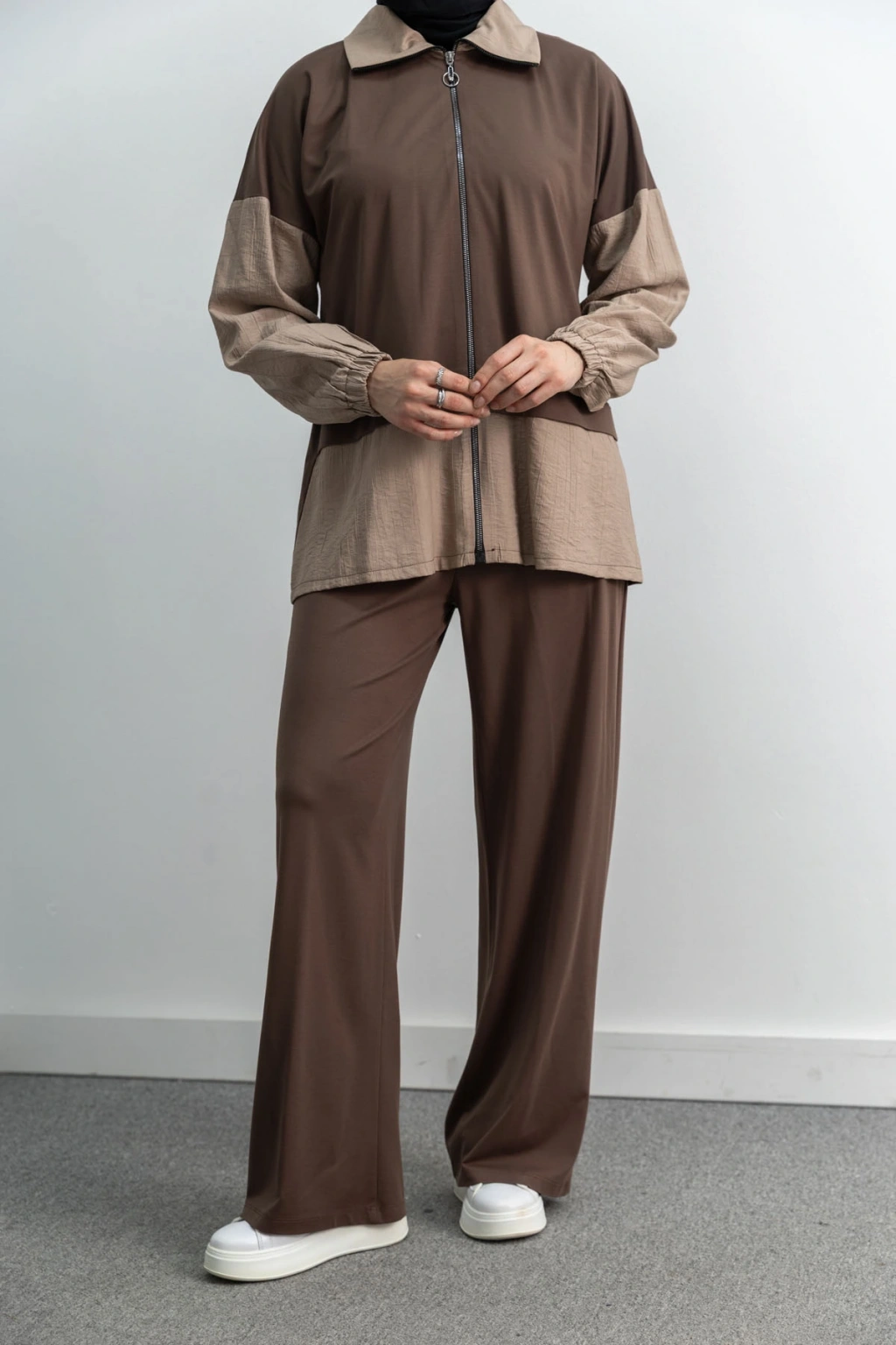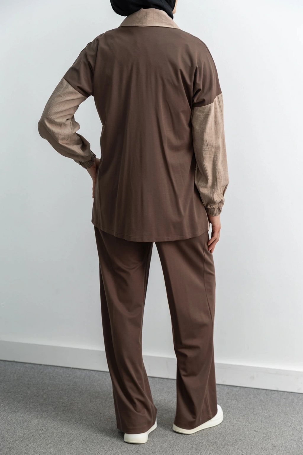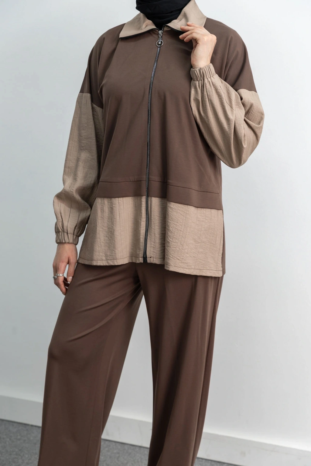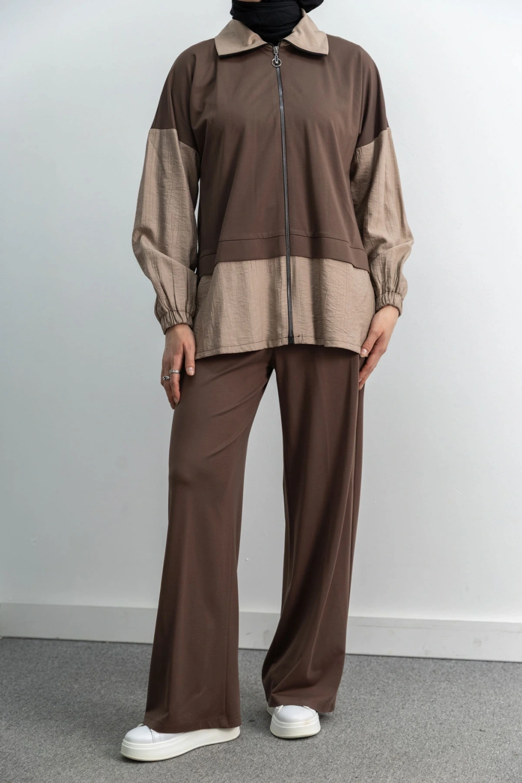Ürün Adı: Letafet Çift Renkli Pantolonlu Takım - KAHVE