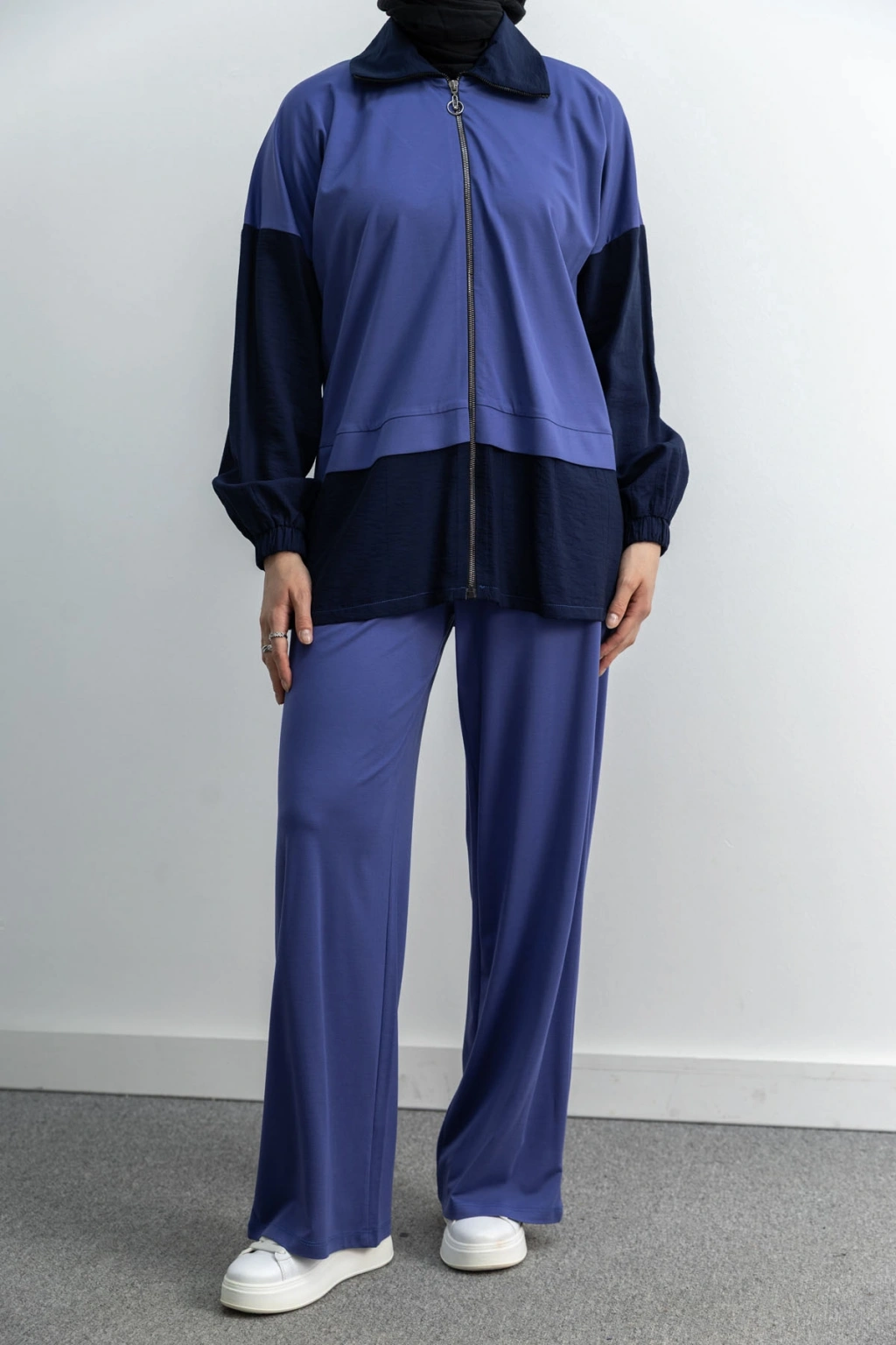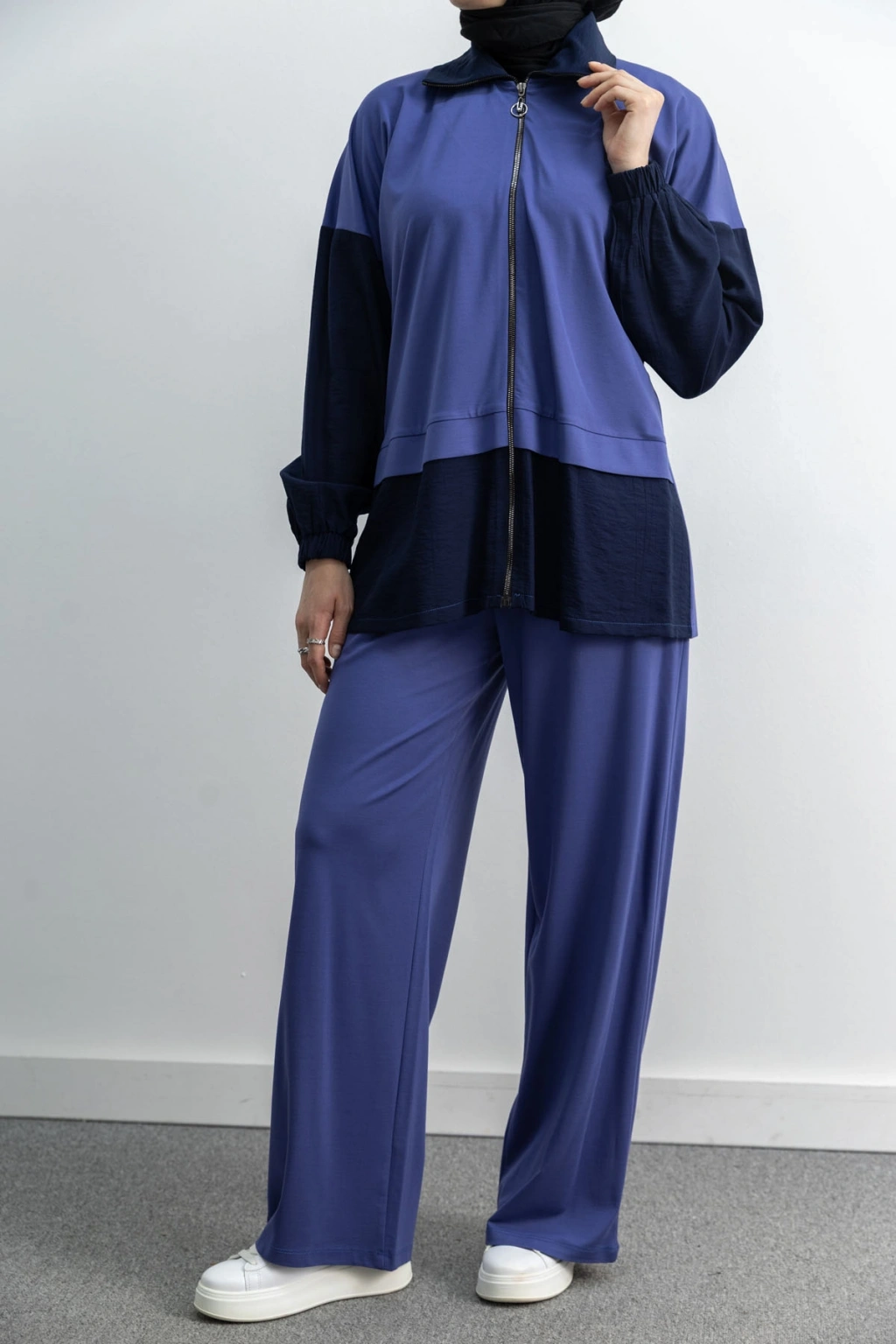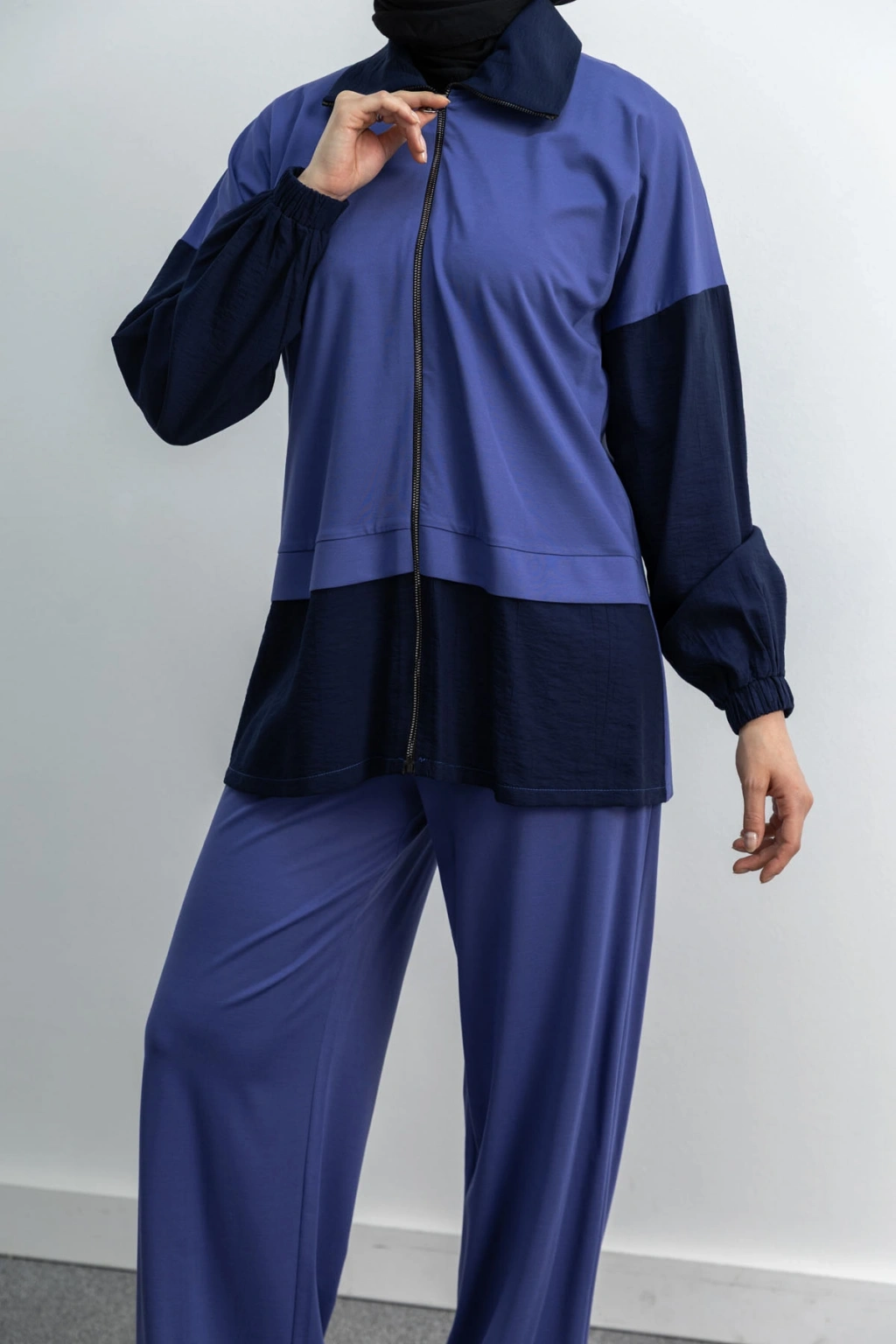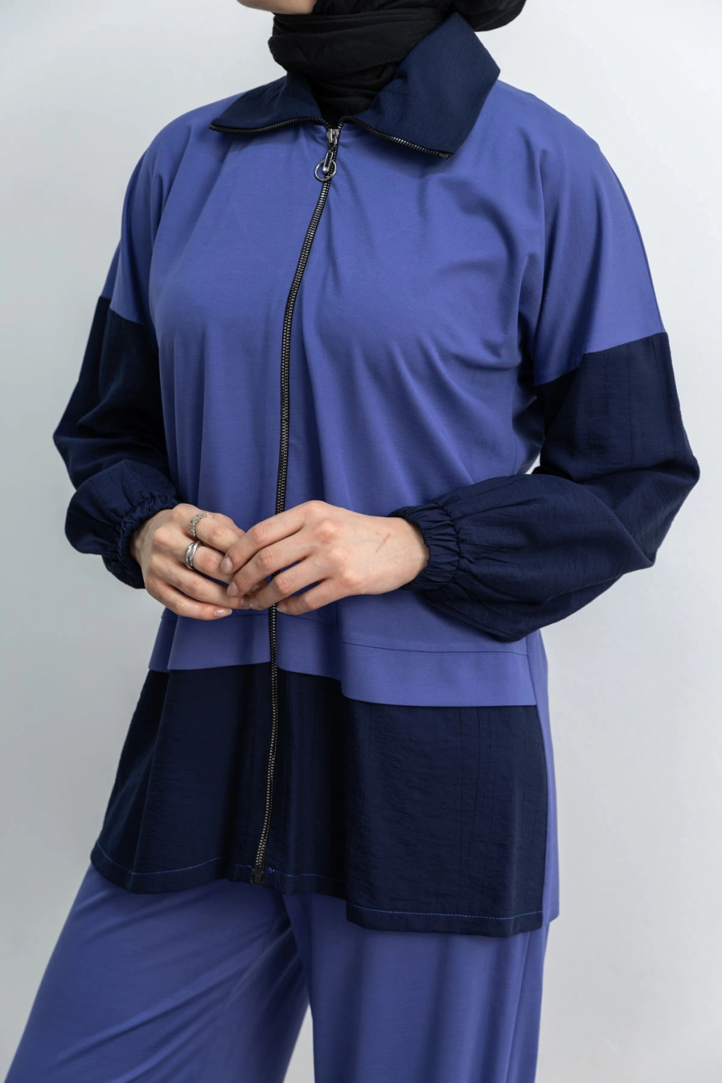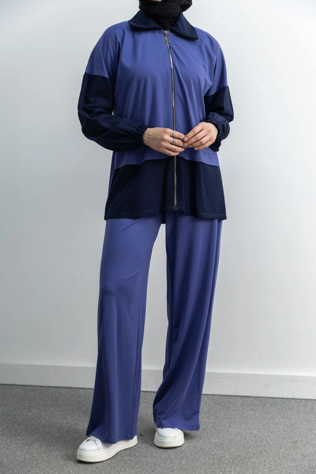 Ürün Adı: Letafet Çift Renkli Pantolonlu Takım - MOR