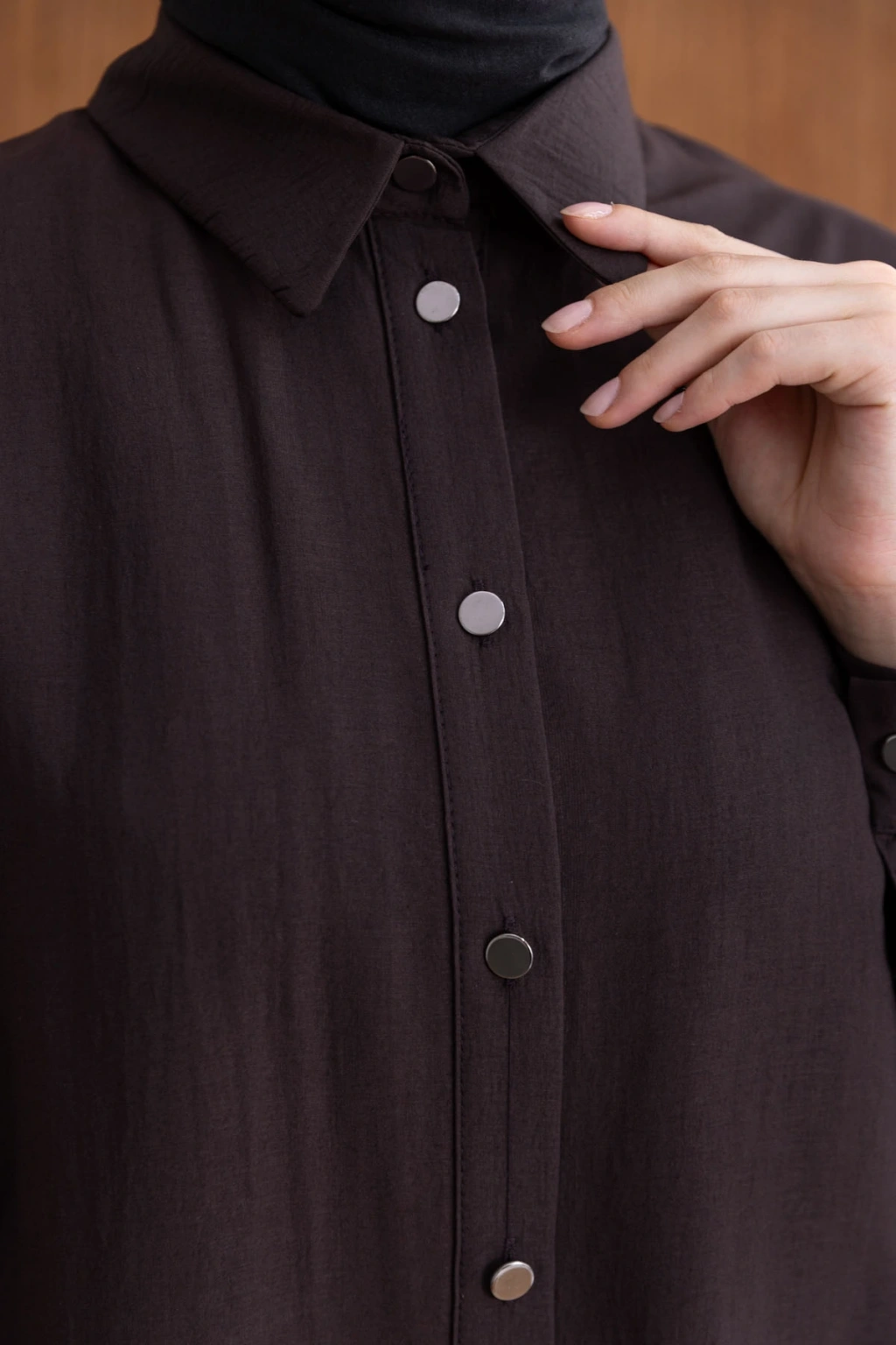 FIRFIR DETAYLI GÖMLEK YAKA ETEKLİ TAKIM - KAHVE, şıklığı ve rahatlığı bir araya getiren benzersiz bir tasarımdır. Yüksek kaliteli kumaşı ve zarif detayları ile hem günlük kullanıma hem de özel günlere uygun olarak tasarlanmıştır.