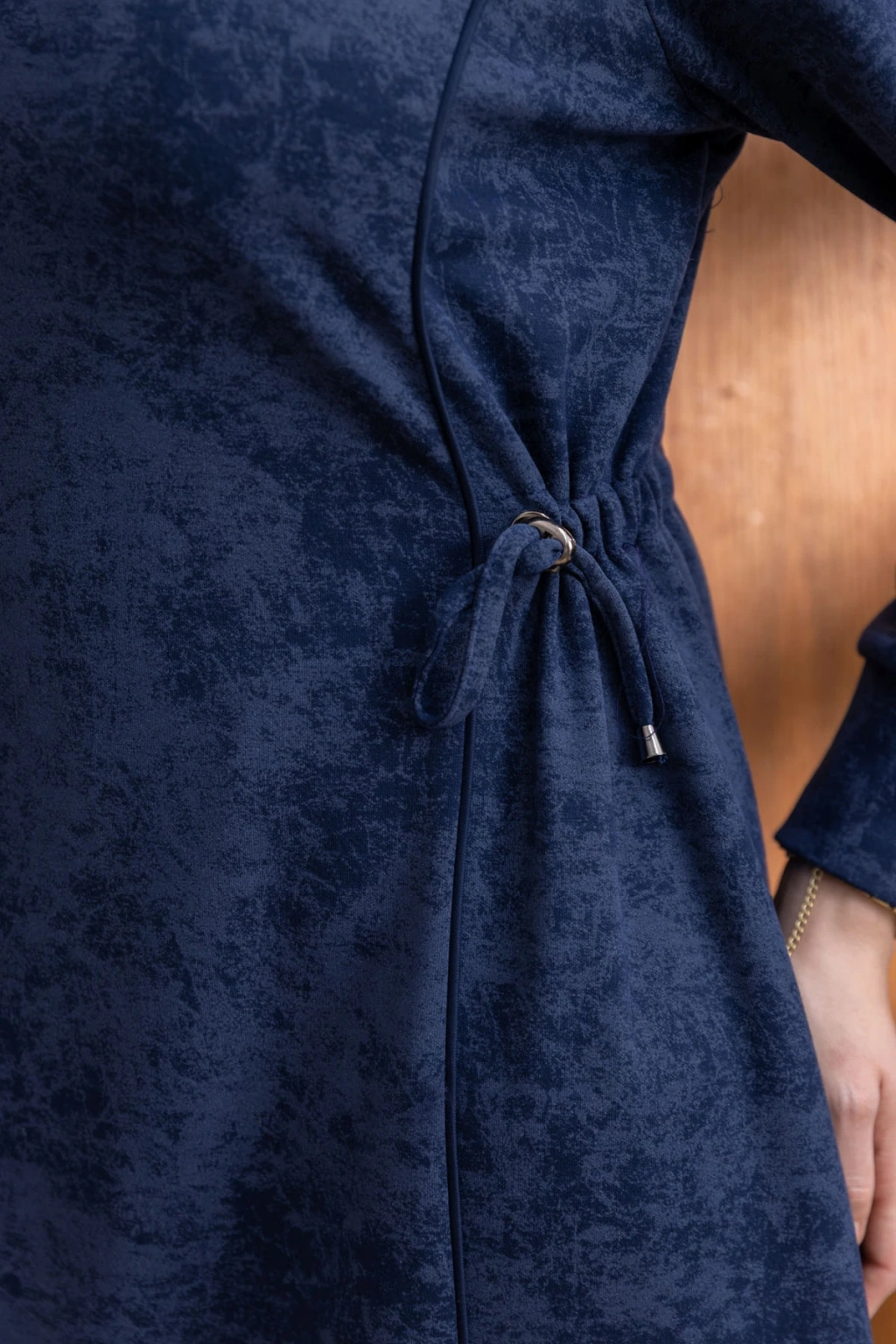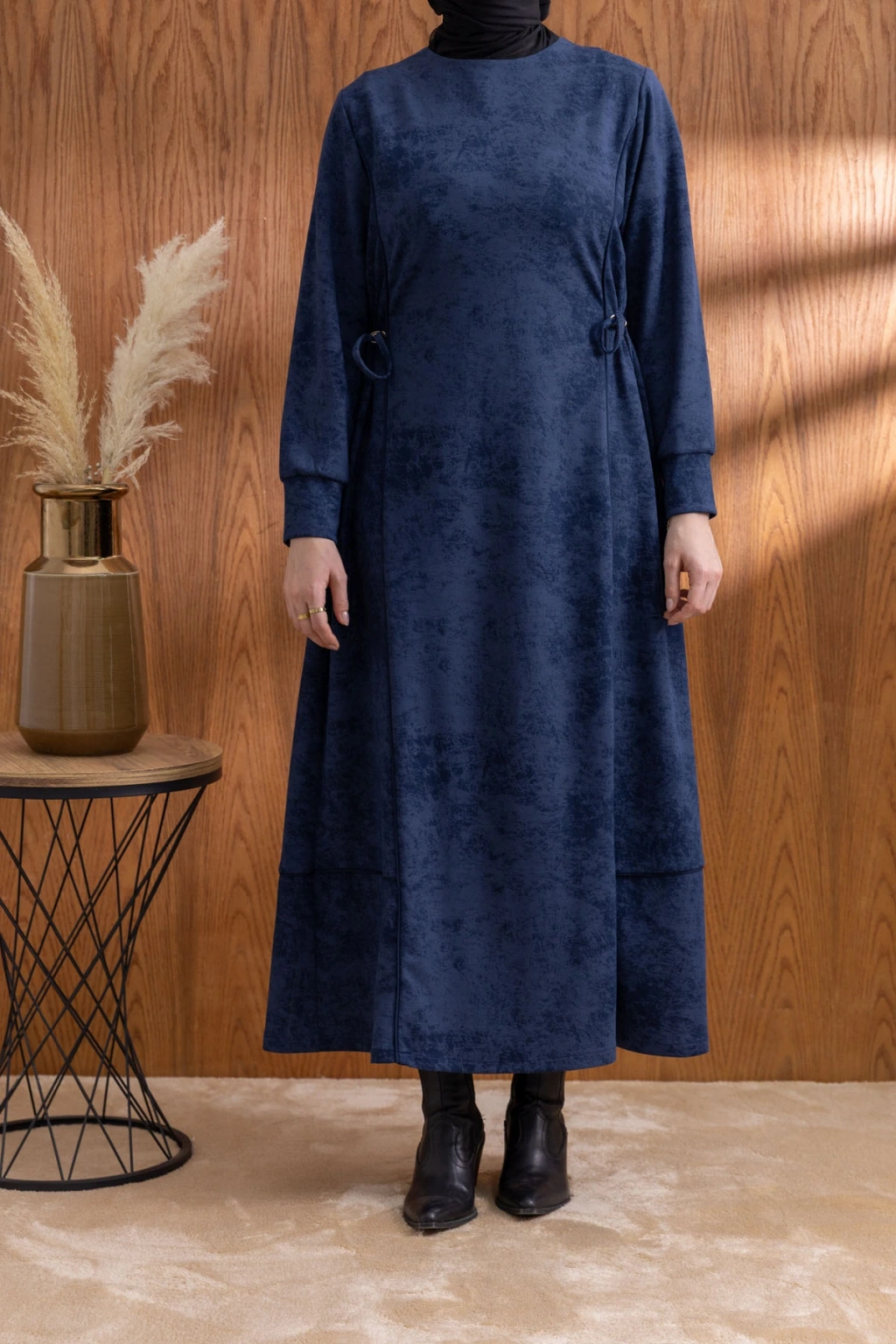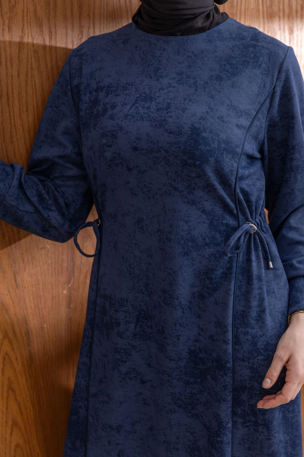 Ürün Adı: BELİ BAĞCIK DETAYLI KUPLU ELBİSE - LACİVERT