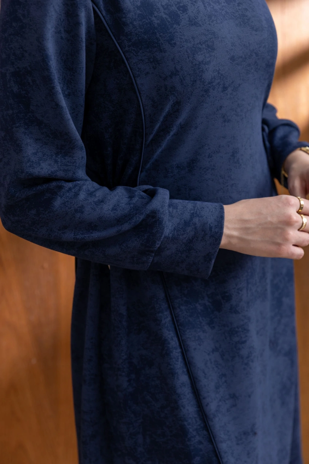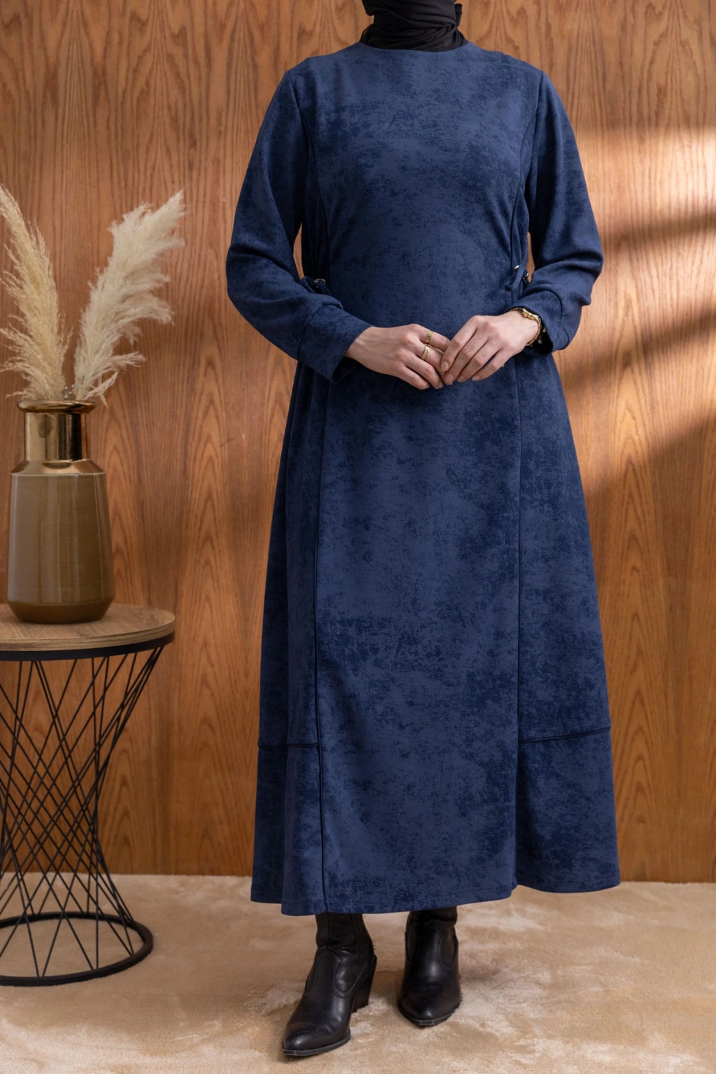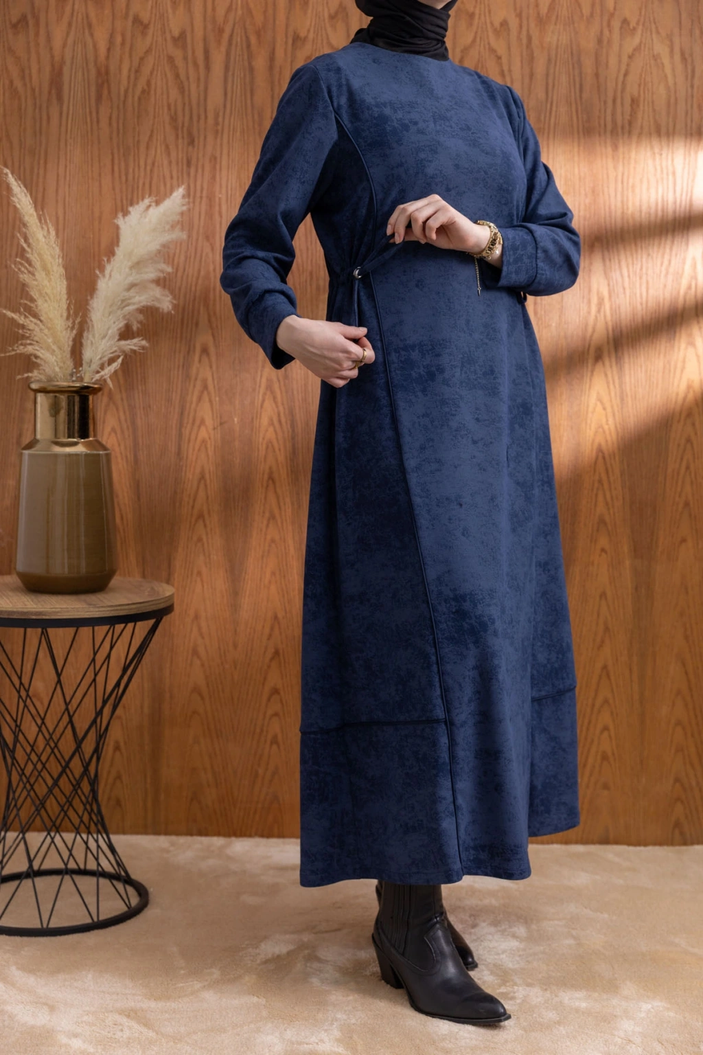 Ürün Adı: BELİ BAĞCIK DETAYLI KUPLU ELBİSE - LACİVERT