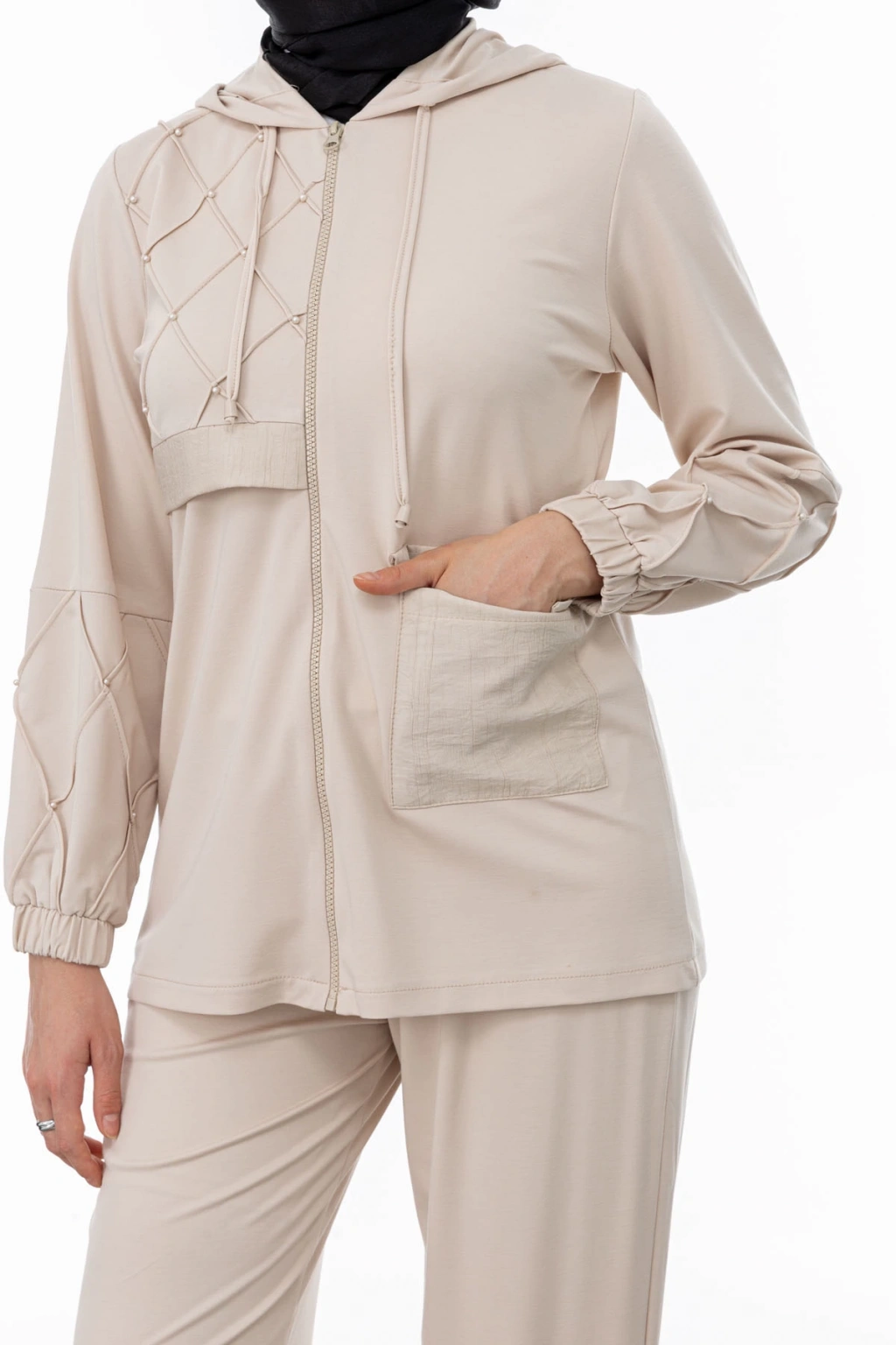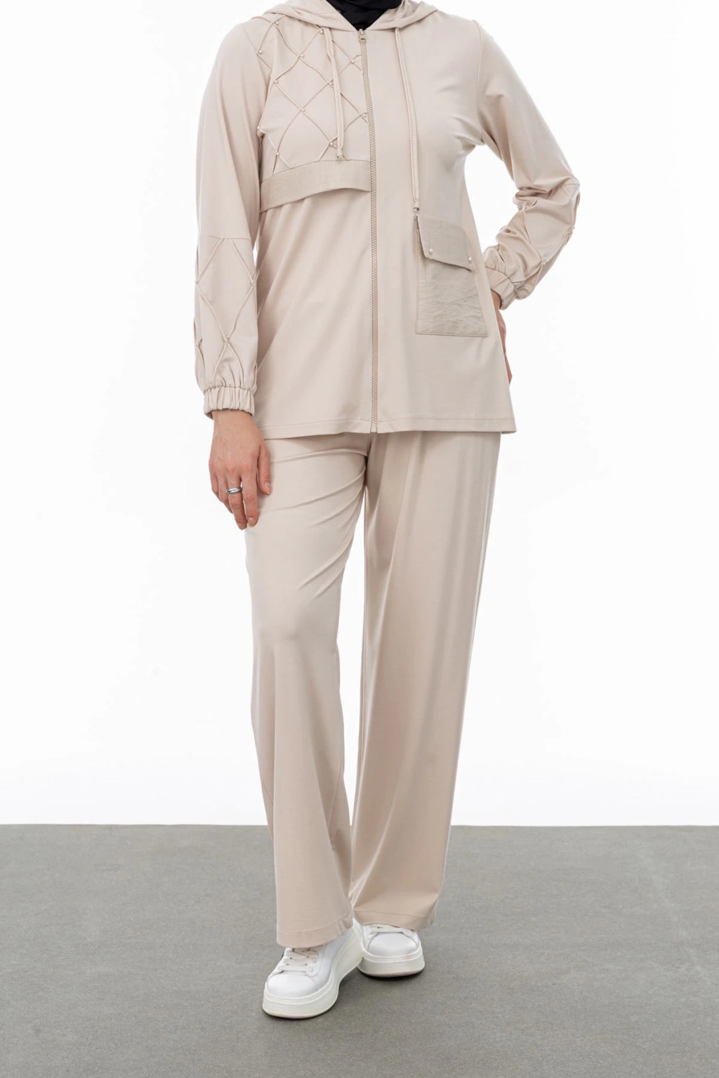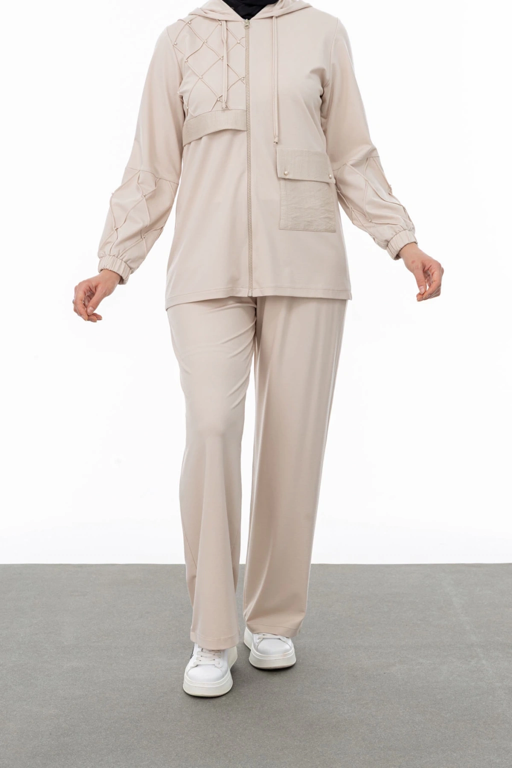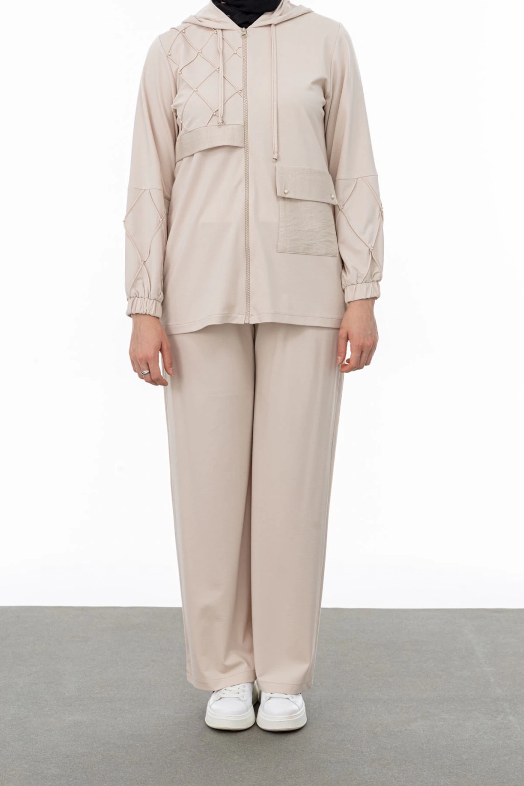 Ürün Adı: NERVÜR DETAYLI İNCİ PANT. TAKIM - BEJ