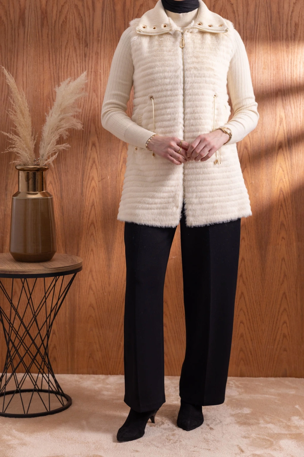 Ürün Adı: RİBANALI BELİ BAĞCIKLI YELEK - EKRU