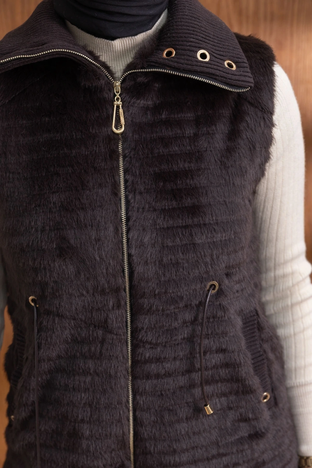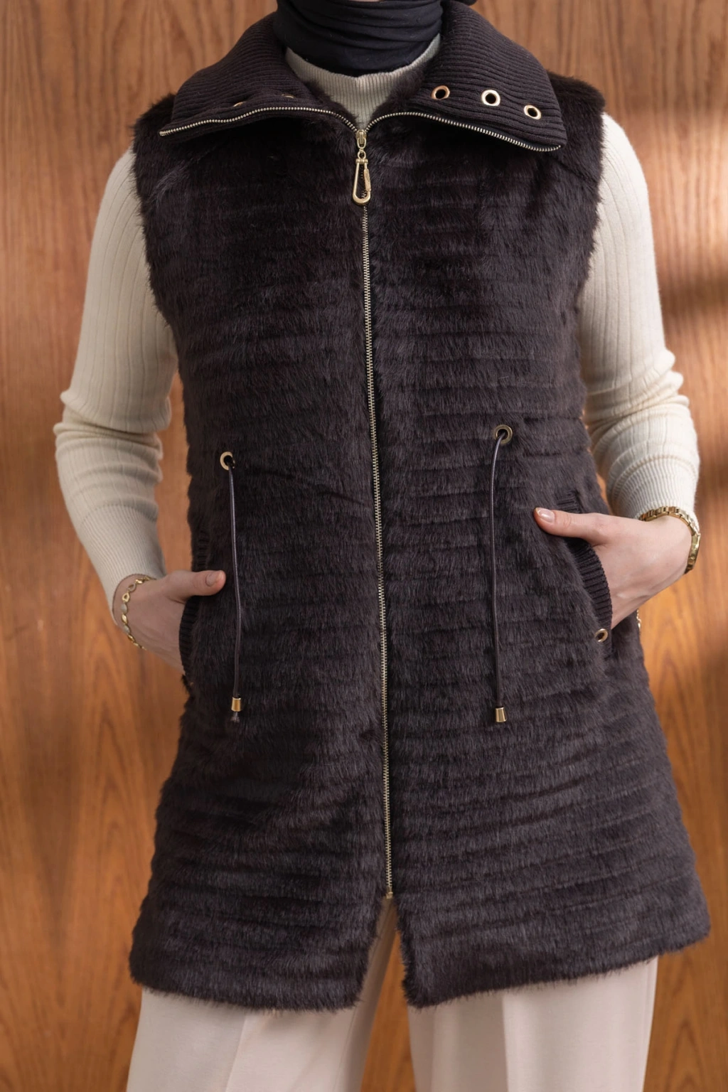 Ürün Adı: RİBANALI BELİ BAĞCIKLI YELEK - KAHVE